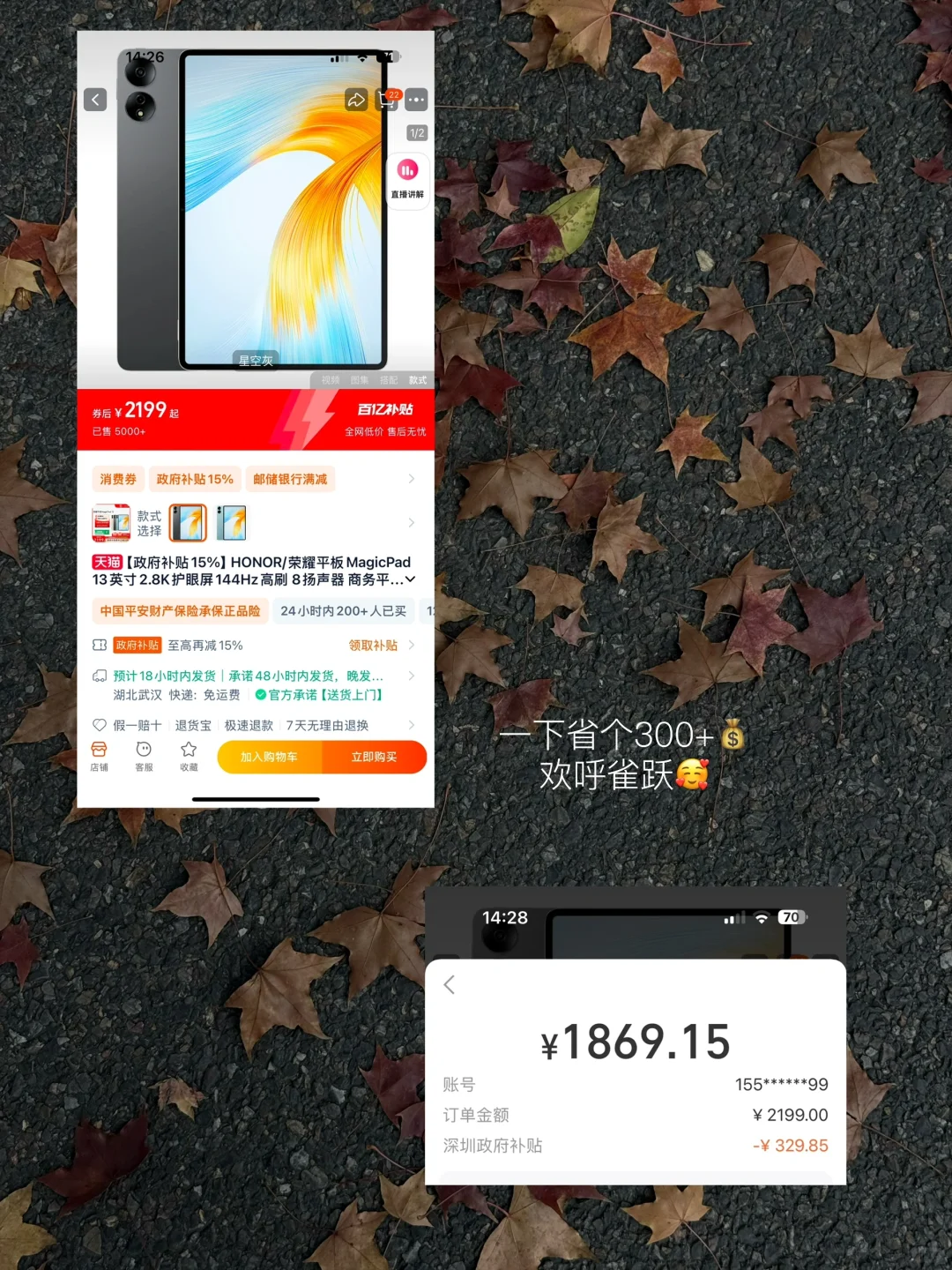 一直想给家人买个平板,看见政府换新补贴赶紧下单,竟然比我之前加入购物车时便宜了好几百,不仅享官方立减的15%,还有3c数码换新补贴高至2000元。vip还能领取大额优惠。多重补贴叠加 折上折。