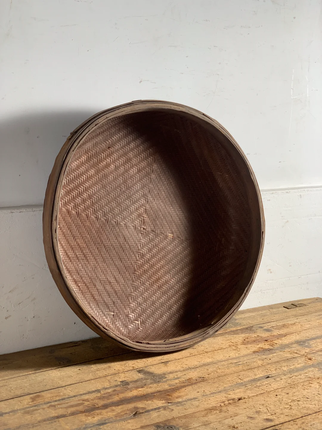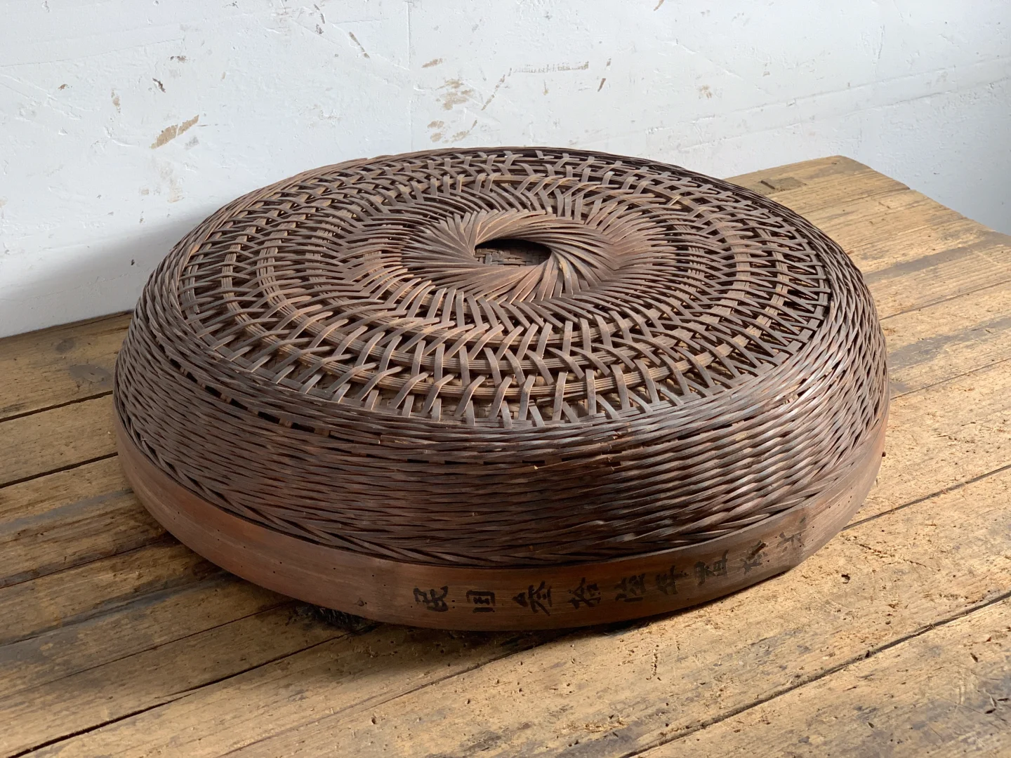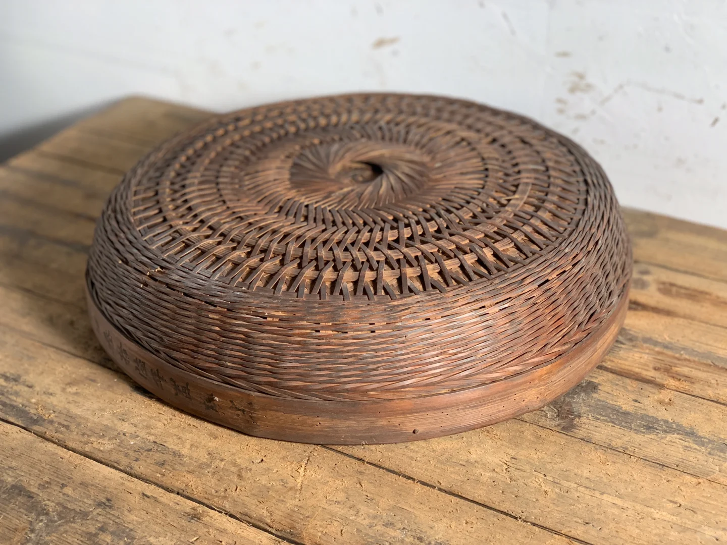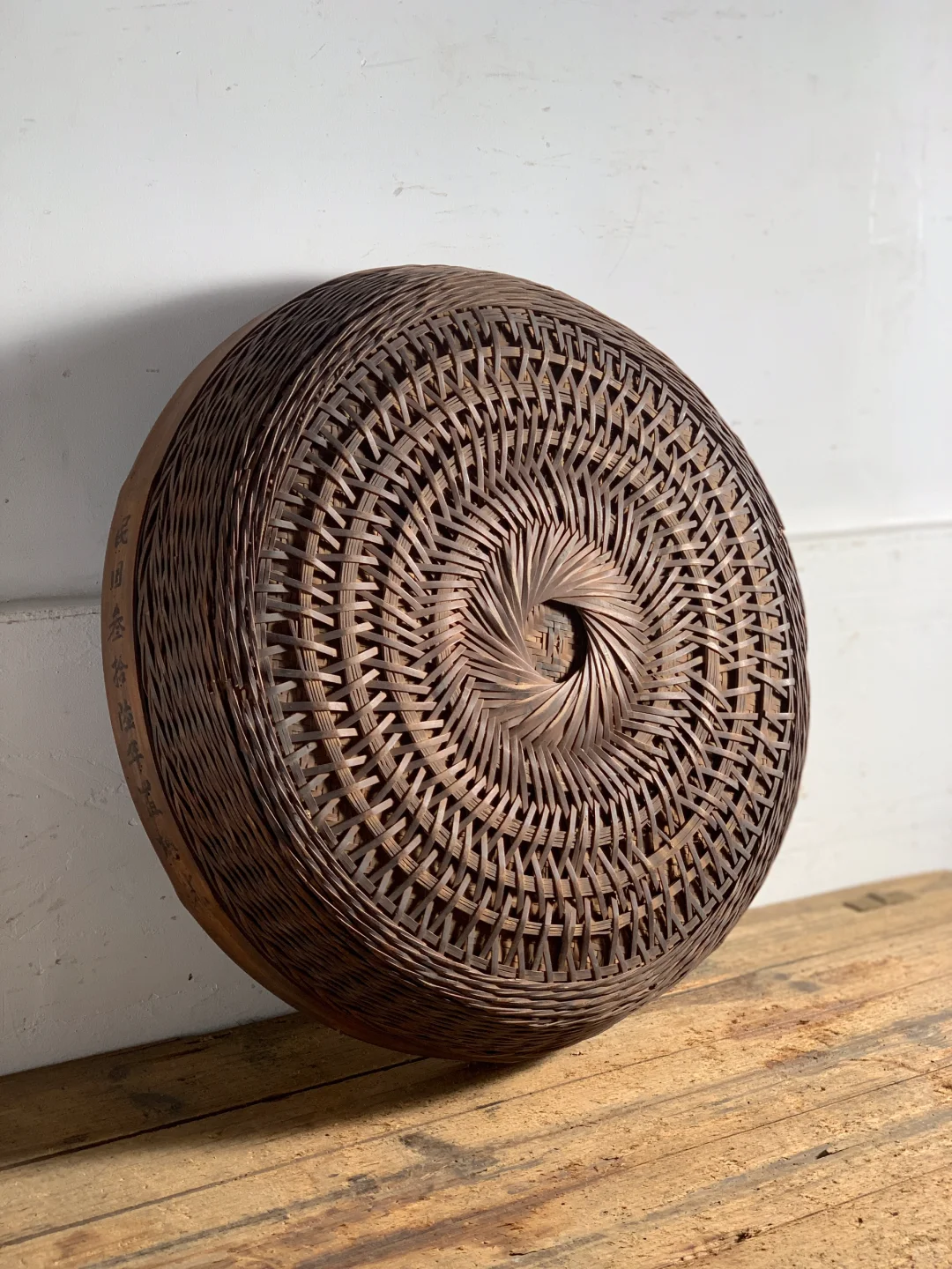 民国竹篾簸箩,包浆厚重;民宿茶室侘寂壁挂。