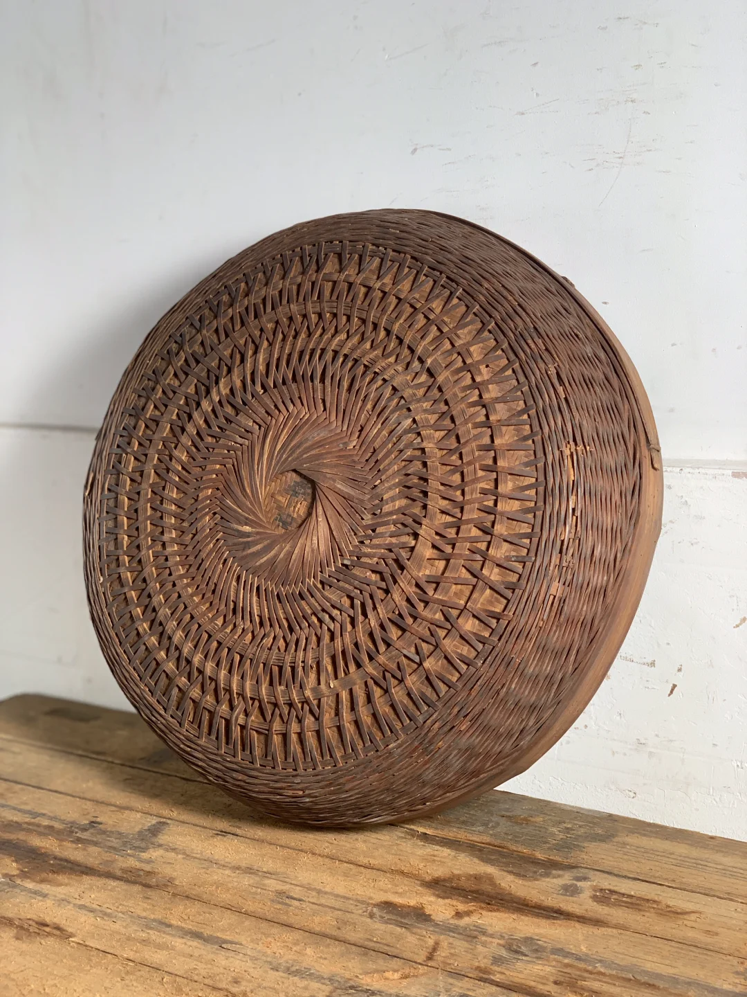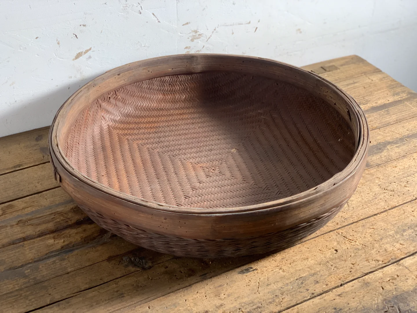 1年1度购物狂欢 民国竹篾簸箩,手工编织,包浆厚重;民宿、茶室极简侘寂挂件,影视道具;40*40*10厘米深。