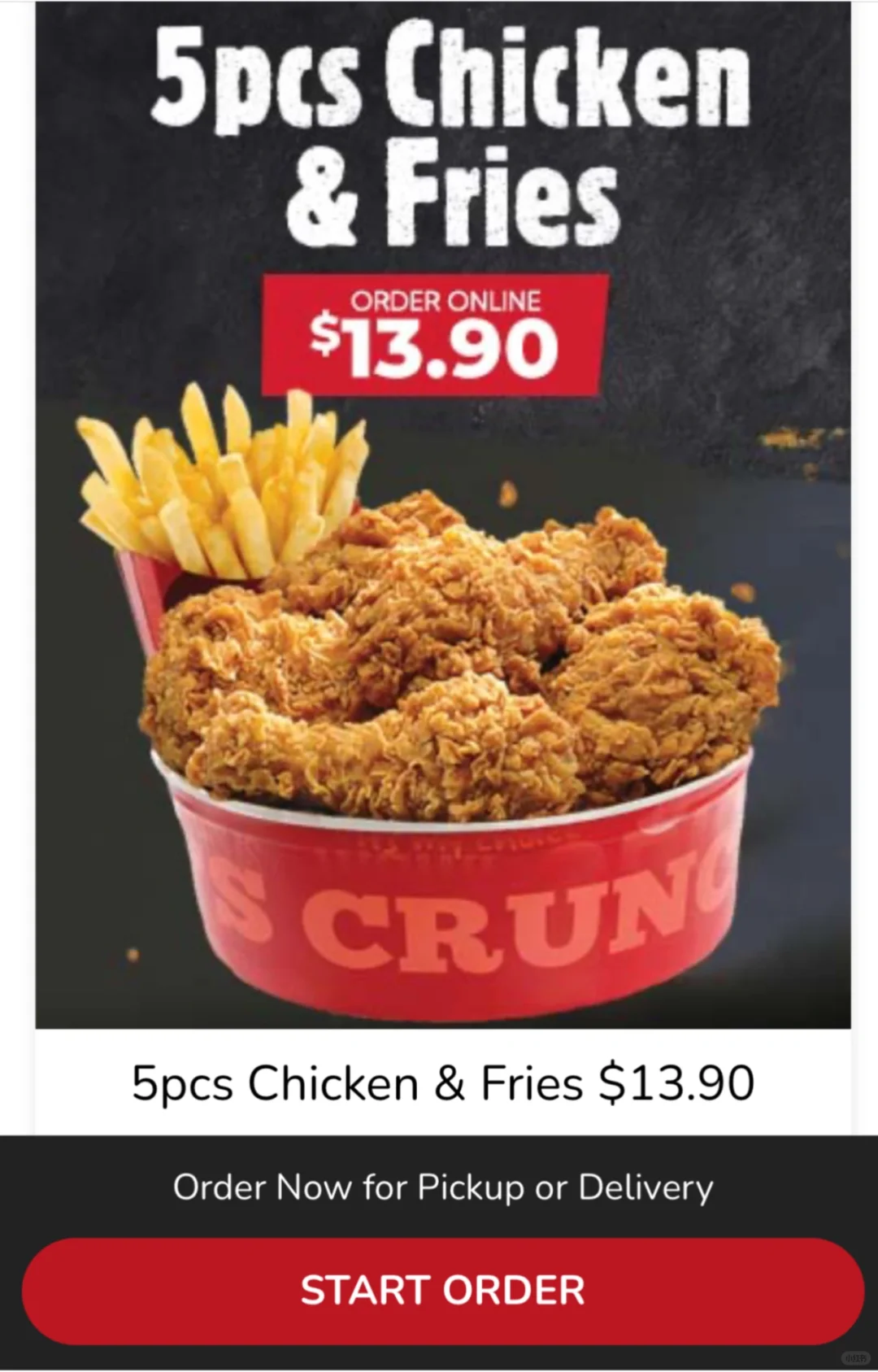 纽村炸鸡店chicking超值炸鸡套餐,5个炸鸡➕一份薯条💰13.9~还有其它优惠折扣都可以去看看[暗中观察R] 虽然说没有鸡肯德基的便宜,但在我个人看来,味道要好上百万倍。[害羞R] 如果你的订单价值超过💰25,还可以使用代码“CK101”获得royal汉堡~ 关注我,下一篇更精彩