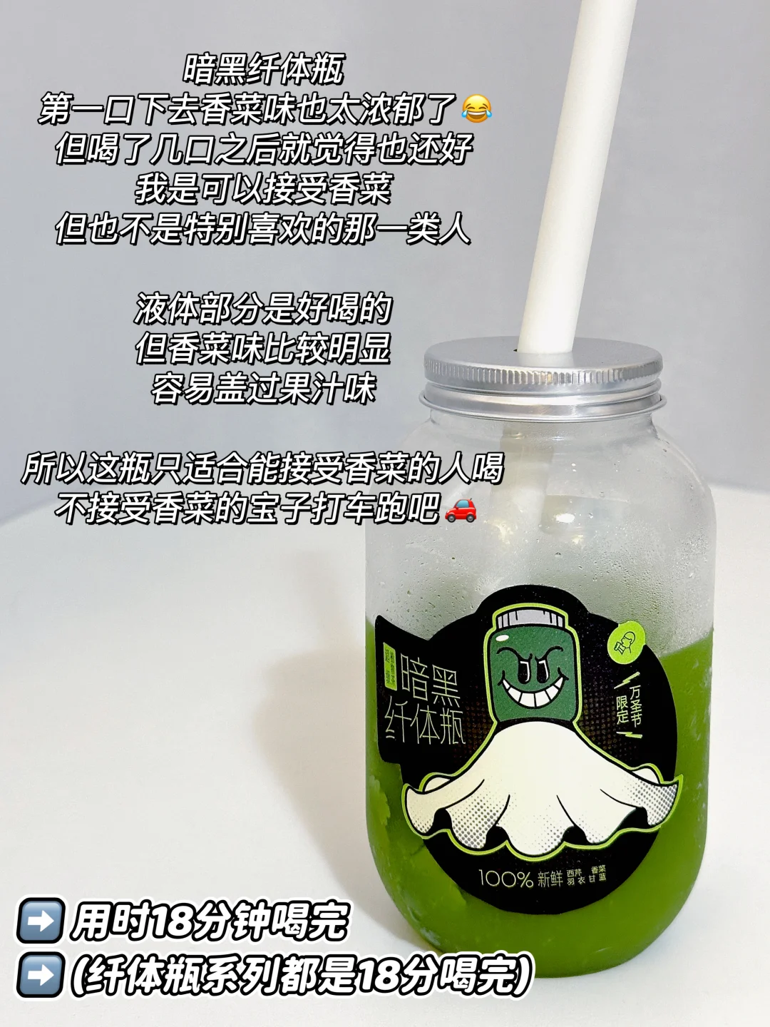 暗黑纤体瓶,第一口下去香菜味也太浓郁了😂
