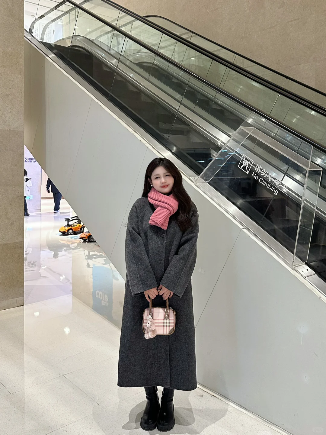 微胖穿搭|🎀啊啊啊灰粉好韩啊!大衣好显瘦~