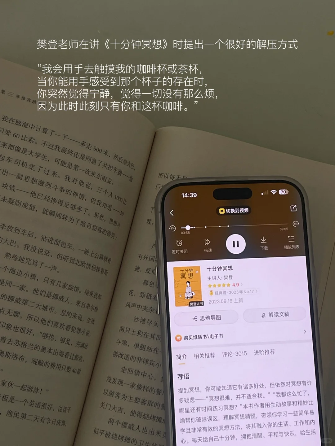 樊登老师在讲《十分钟冥想》时提出一个很好的解压方式