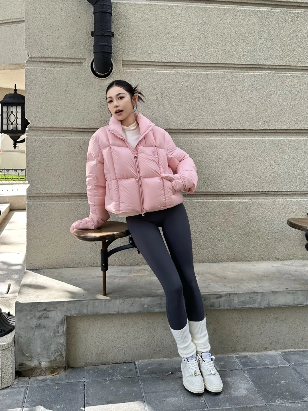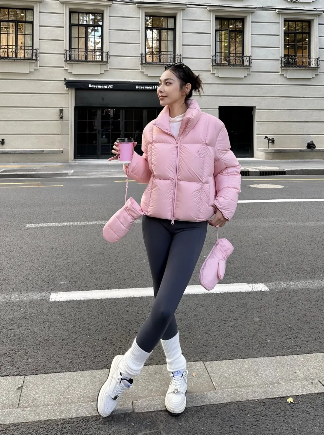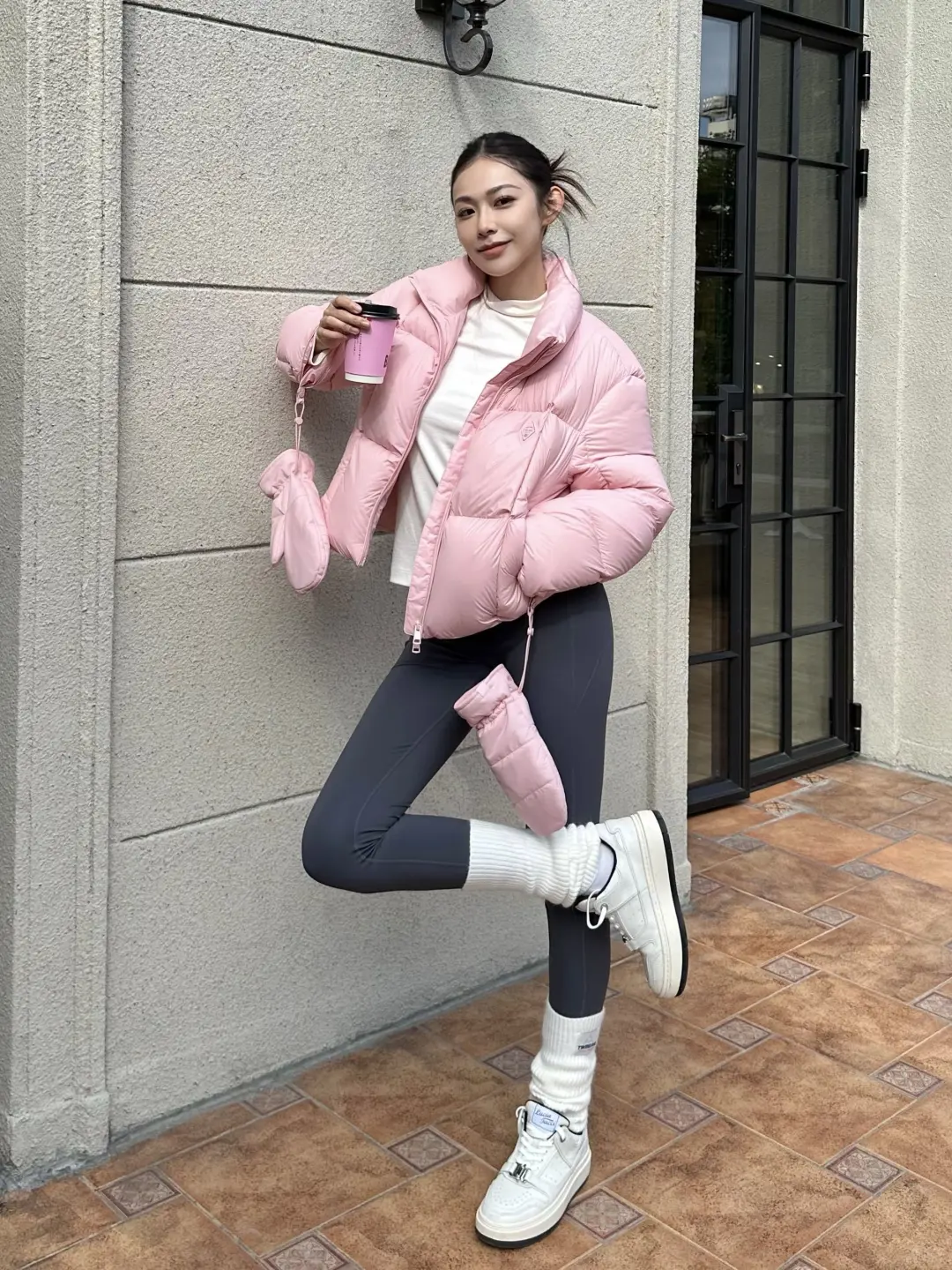 听说时髦的人已经穿上羽绒服了 今年冬天就想要跳脱出黑白灰的,尝试下马卡龙色系~ 穿上TW这件棉花糖羽绒服有种被包裹进云朵的幸福感☁️ 超级轻盈又保暖 而且樱花粉果然上身元气满满甜度超标💓 搭配灰色瑜伽裤和白色袜套一秒解决了松弛的冬日运动穿搭 自带的羽绒手套就算冬日骑行也不用担心手冷🧤 已经开始期待暖呼呼的度过这个冬天啦~ Total look from TEENIEWEENIE