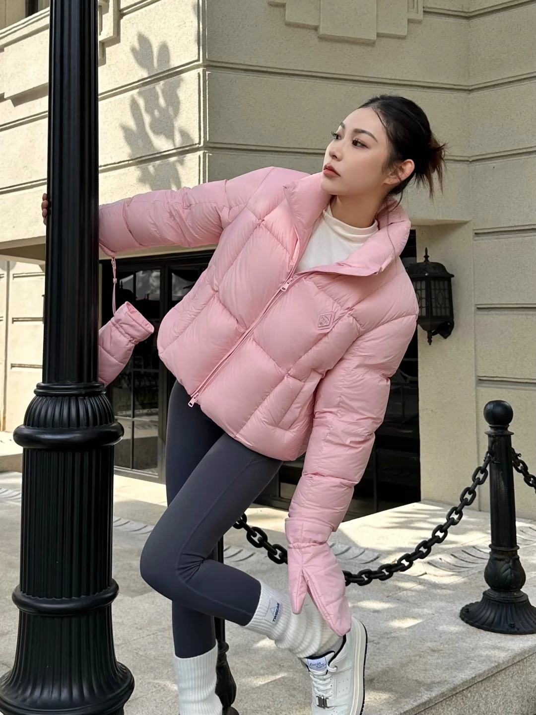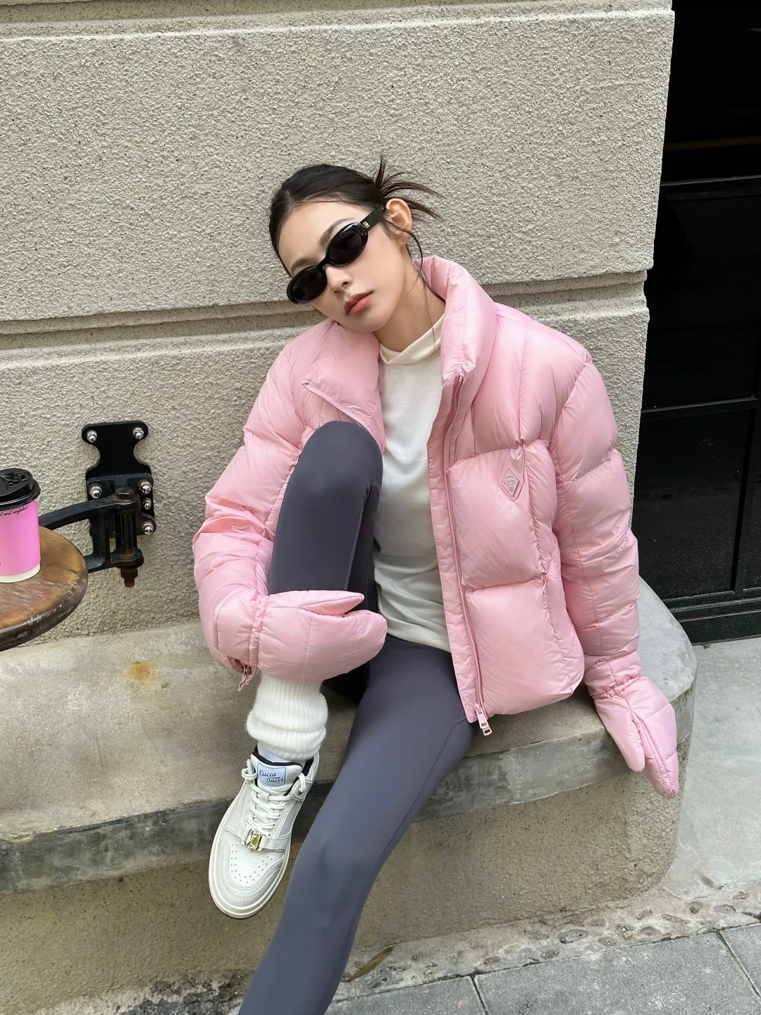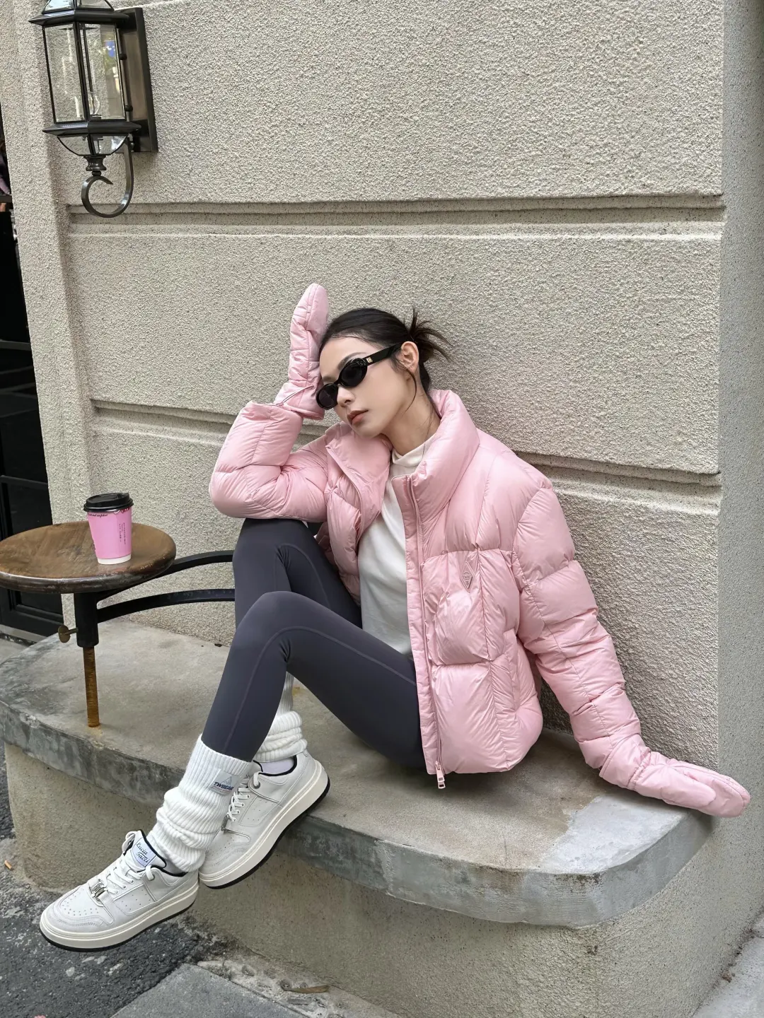 听说时髦的人已经穿上羽绒服了 今年冬天就想要跳脱出黑白灰的,尝试下马卡龙色系~ 穿上TW这件棉花糖羽绒服有种被包裹进云朵的幸福感☁️ 超级轻盈又保暖 而且樱花粉果然上身元气满满甜度超标💓 搭配灰色瑜伽裤和白色袜套一秒解决了松弛的冬日运动穿搭 自带的羽绒手套就算冬日骑行也不用担心手冷🧤 已经开始期待暖呼呼的度过这个冬天啦~ Total look from TEENIEWEENIE