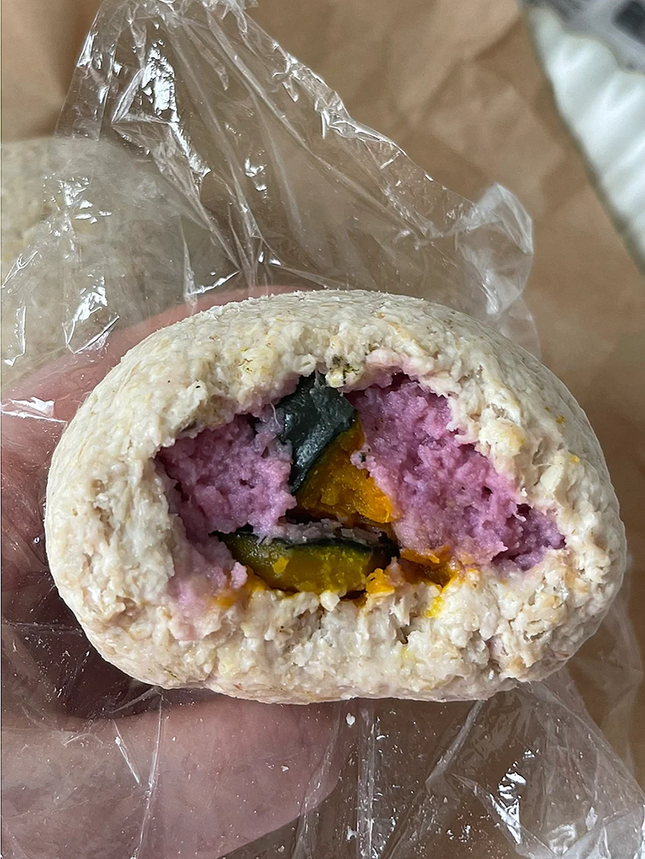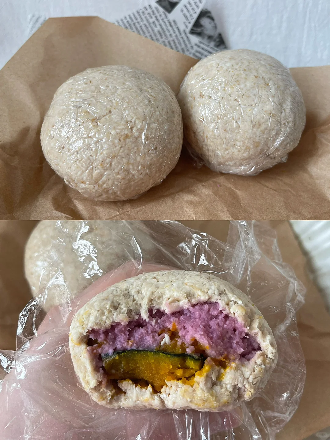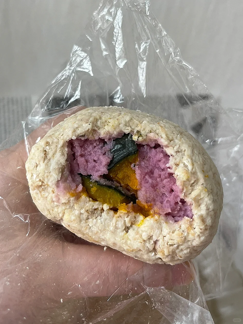 [种草R]Tip:我做了两个,燕麦用的比较厚实,宝子们可以自己适量增减;热水的量也一样,慢慢加到呈微微粘手的面团状即可,不急着吃也可以加冷水,冷藏放置一晚第二天吃;南瓜最好不用老南瓜,比较稀,贝贝南瓜口感好!