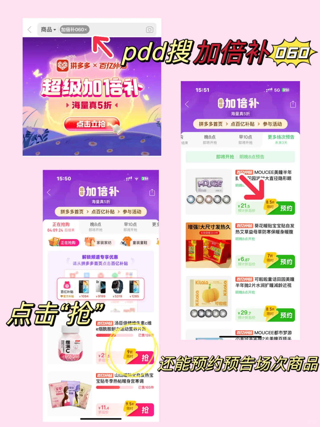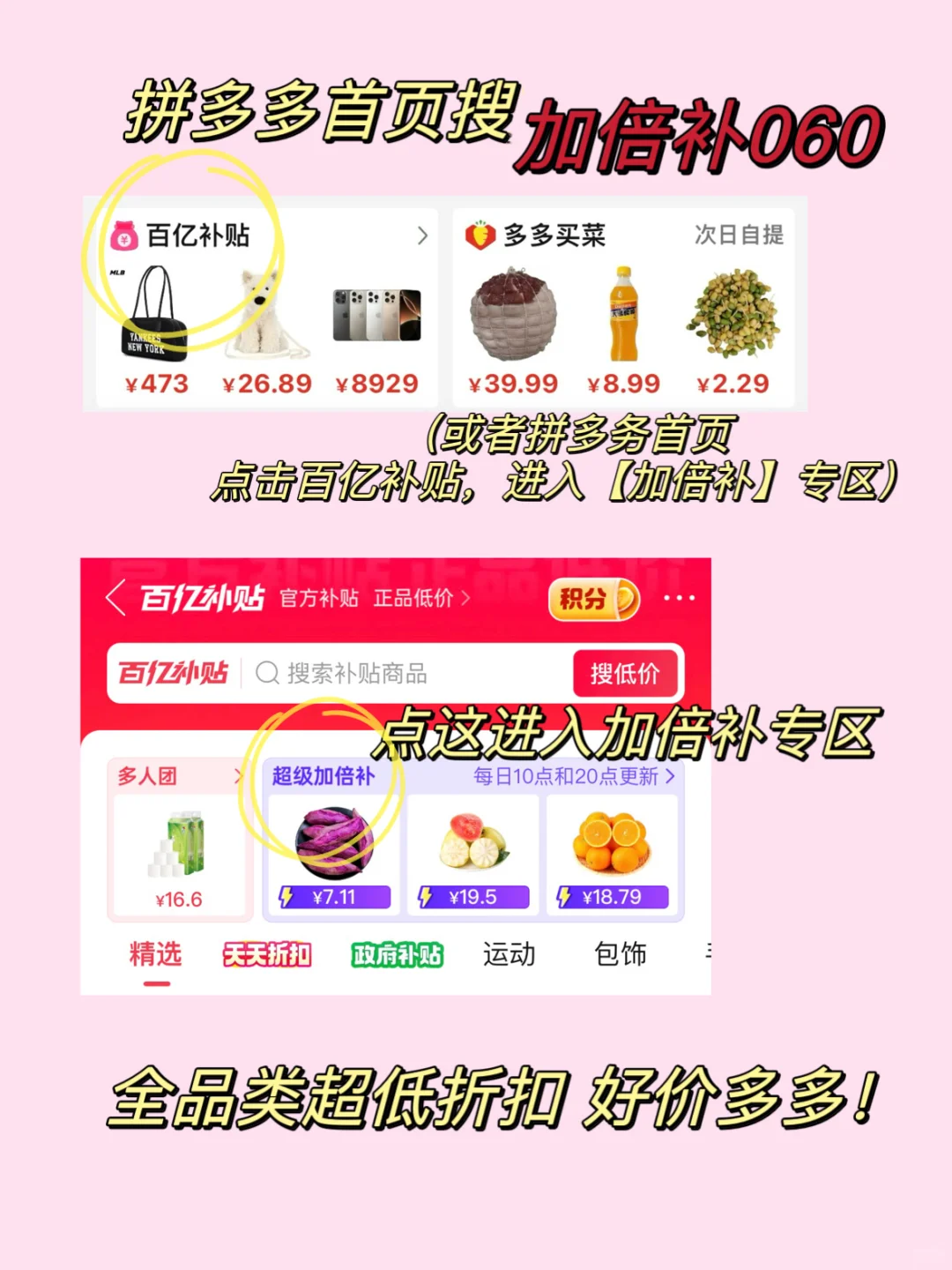 参与方式超简单,在拼多多首页搜【加倍补060】直达,点击就能进入活动专区!