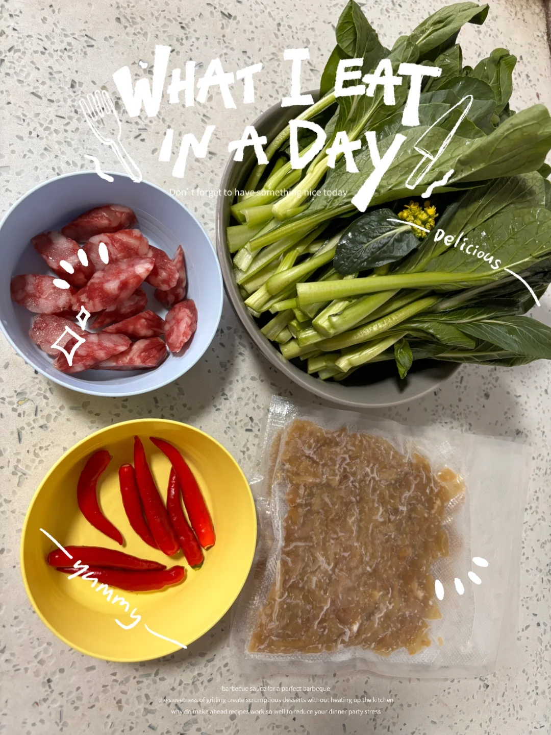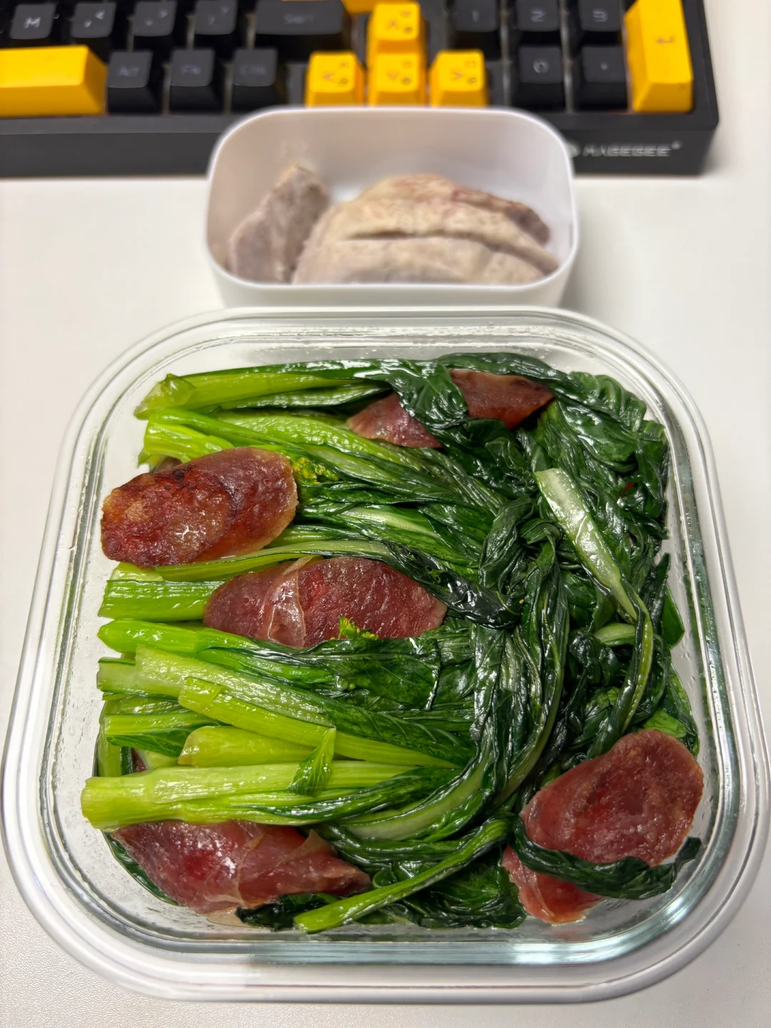 3⃣️晚:腊肉炒菜心、芋头(3.5💰)