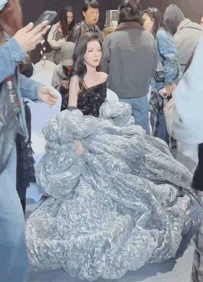 #张予曦好像穿了一床被子# 张予曦这套造型太吸睛,上黑裙下银灰长裙,乍一看像穿了
