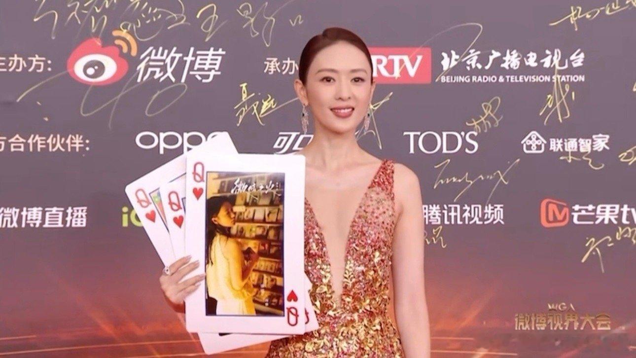 #童瑶拿了三张Queen# 童瑶在微博视界大会红毯上惊艳全场!她带着作品集变身的扑克牌,那三张Q宛如王炸。她就像女王降临,和Queen这个词配适度超高,一举一动都散发着独特魅力。