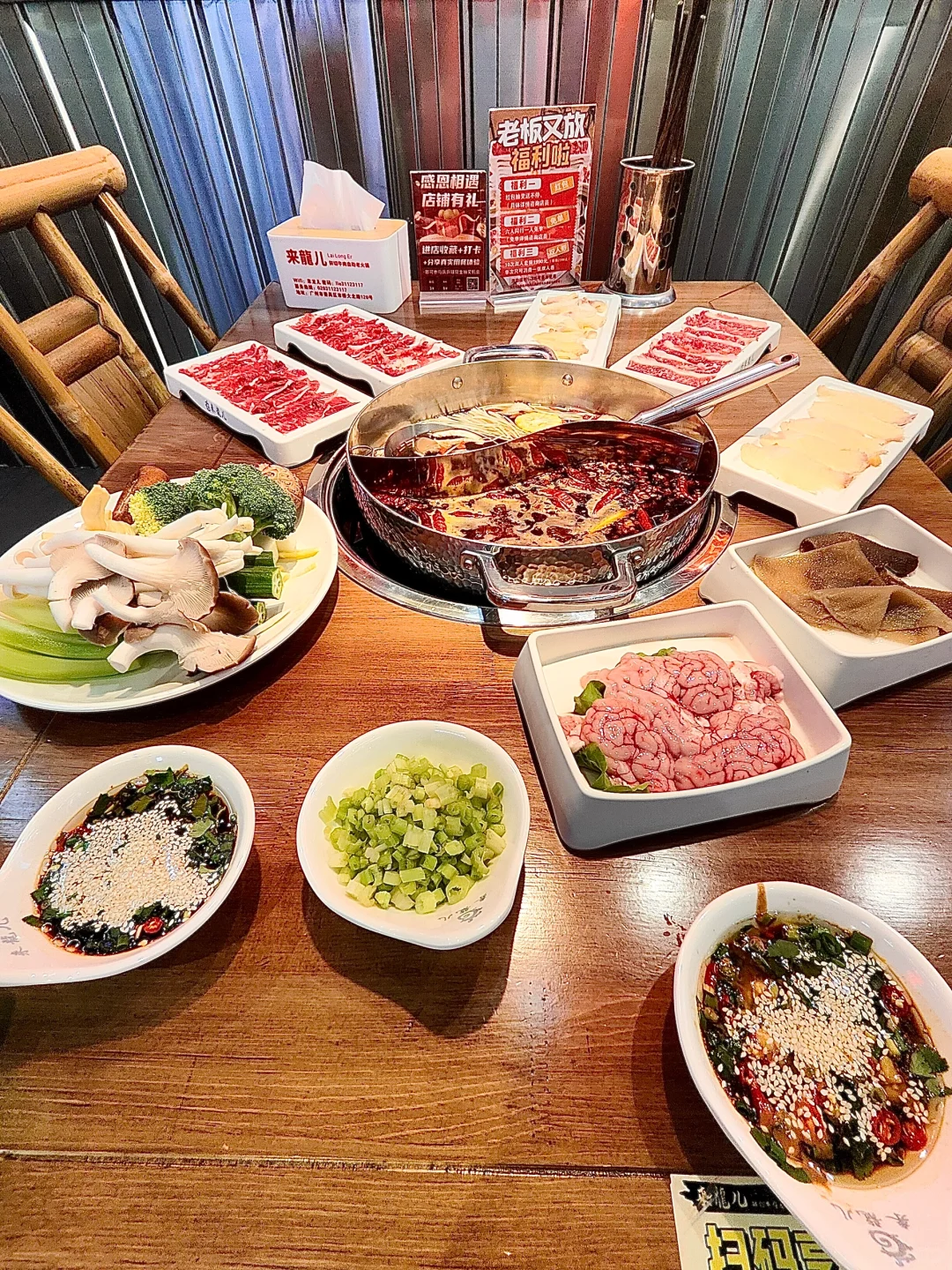 这家牛肉自助火锅🍲我已经来过很多次了🔥 ✨最最喜欢这里的牛肉,看得见的新鲜,看着帅哥🤵先切,无限量任吃,吃🉐太爽啦! ❄️雪花牛肉 小黄牛的牛肉,所以牛油味更加浓,部位也选择得很好,肥瘦均匀,麻辣味最好吃😋 🦐海鲜 这里🈶专门的海鲜池,所以很新鲜! 🍖烧烤、水果🍉、甜品🍮、饮料🥤……都是品种很多,一定要留着肚子来吃😋😋 👧服务 服务态度很好,收拾碟子或者加汤都很快👍 🏠店名:来龍儿鲜切牛肉自助老火锅 📍地址:番禺区大北路118、120、122、124号地下室之三