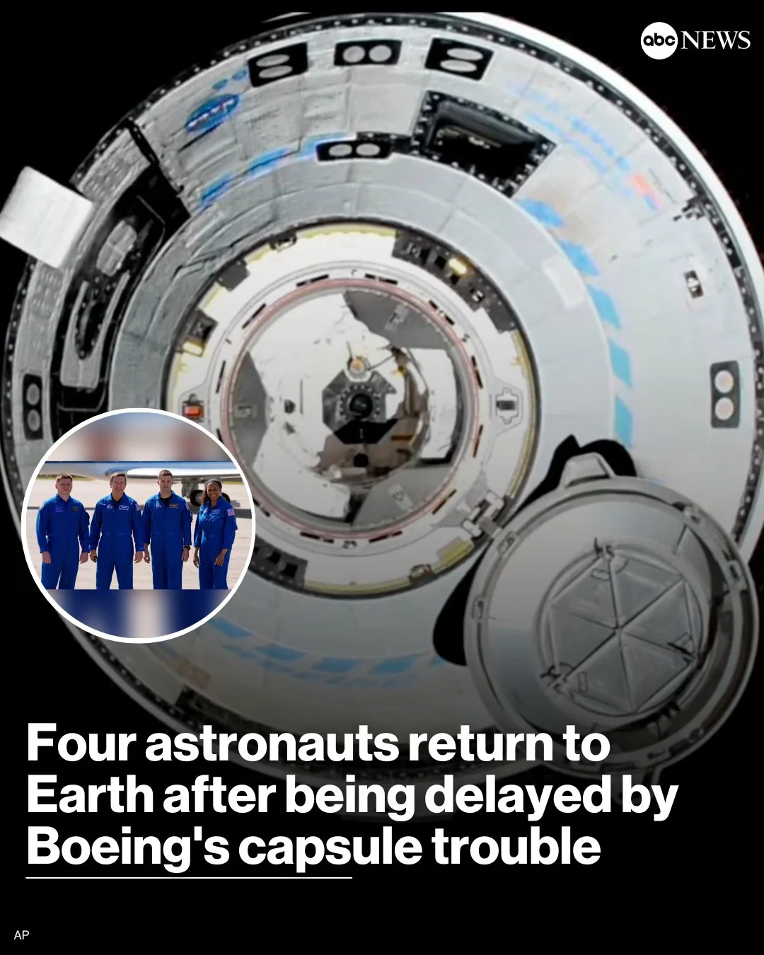 国际空间四名航天员前几天倒是搭乘Crew-8返回地球了,但上次被波音送上天的两名航天员依旧还在天上。
