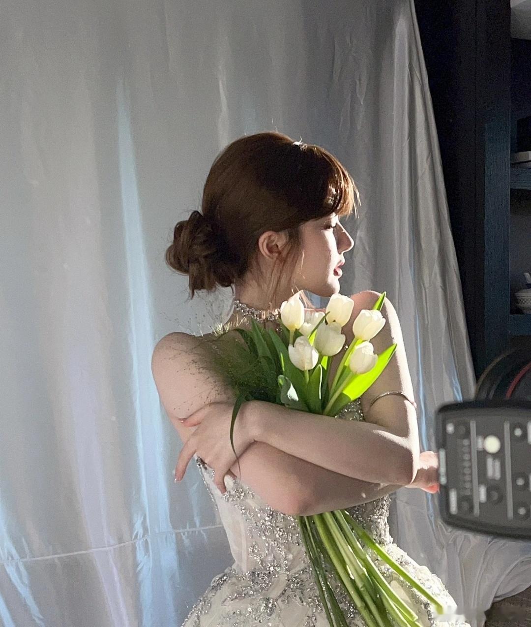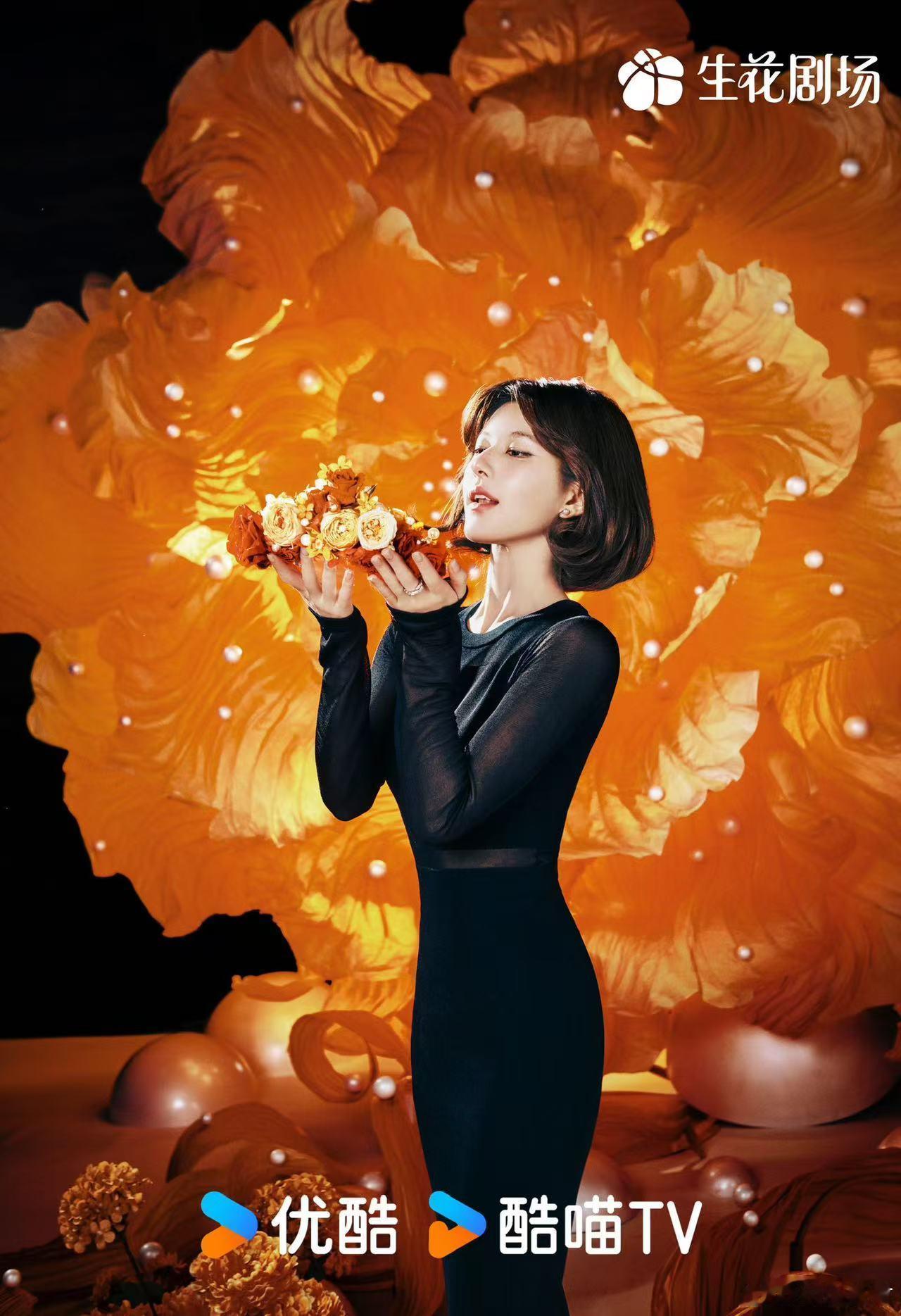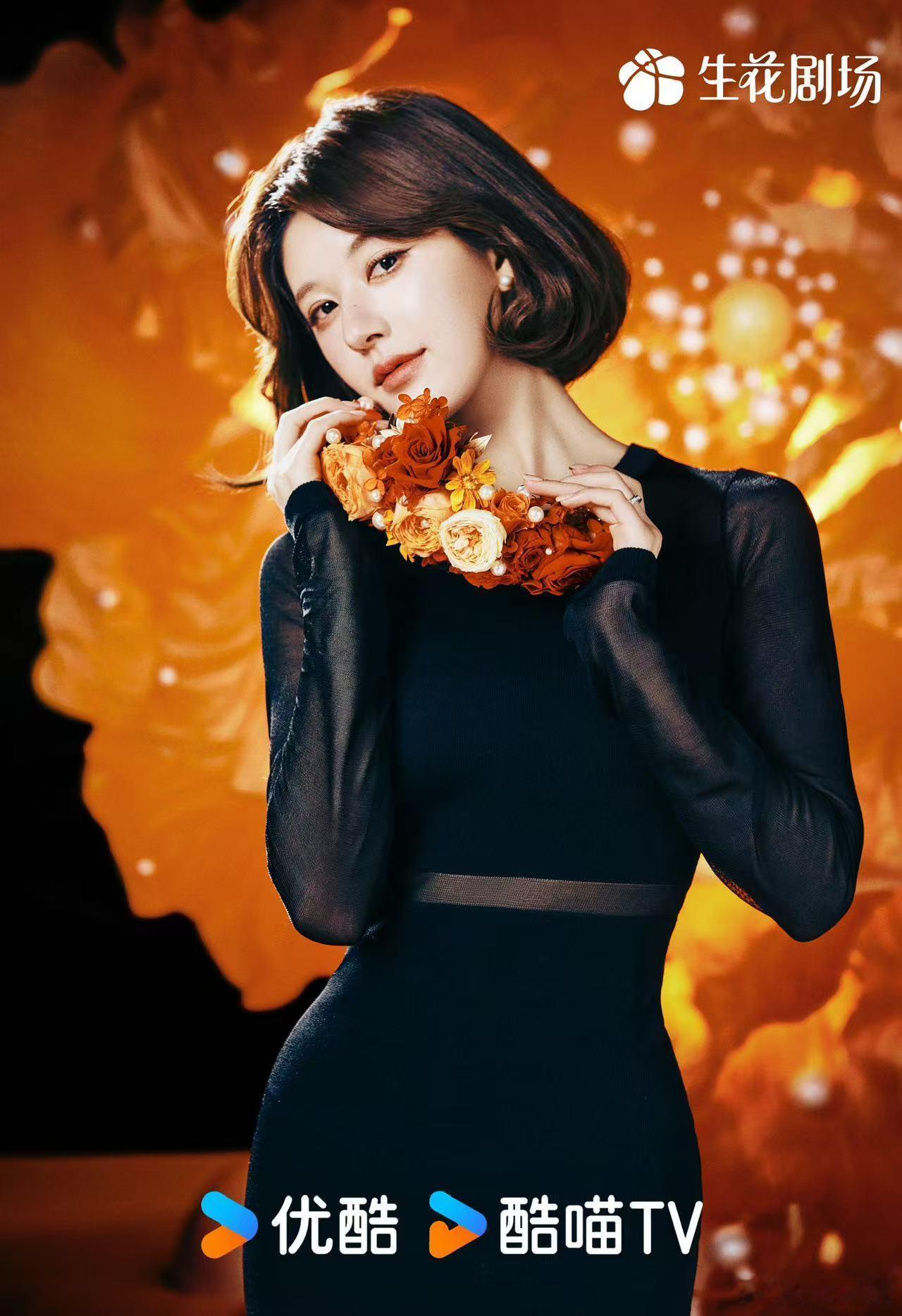 #繁花映衬下的赵露思#被露思这组图美到了!✨怎么会有这么绝美的宝藏女孩吖!黑色长裙完美地勾勒出她的曼妙身姿,再加上那一头柔顺的短发,与她优雅的形象完美融合,手中的鲜花和珍珠装饰,就像是人从画中来,真的好新鲜的风格,被露思宝美到!🥰