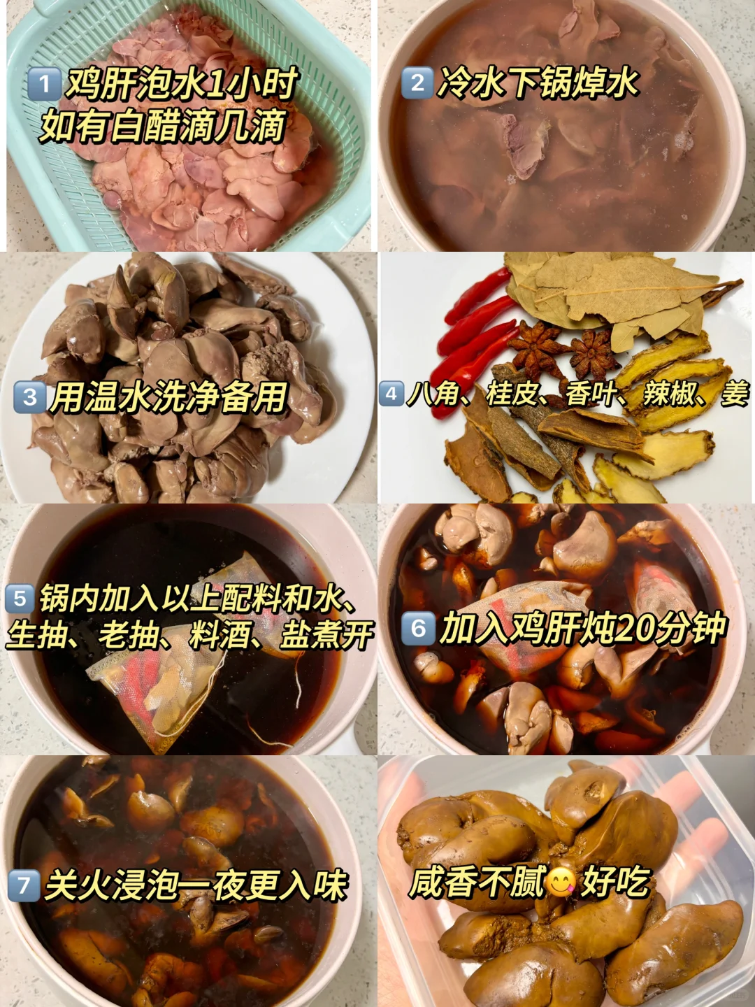 1️⃣鸡肝泡水1小时(有白醋可滴一点,