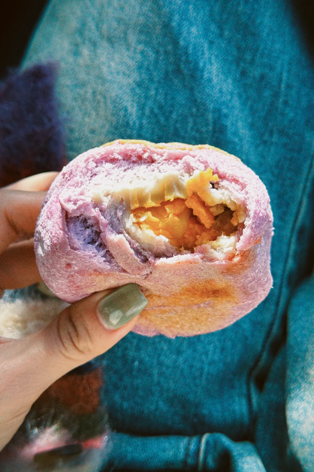 单纯因为颜色和我今天穿的毛衣很搭选的,没想到一口下去口感太丰富了,只恨自己拿少了。麻薯拉丝Q弹,芋泥与咸蛋黄混合,甜度和咸度都刚刚好,原本不爱吃咸蛋黄的我第一次爱上这个味道