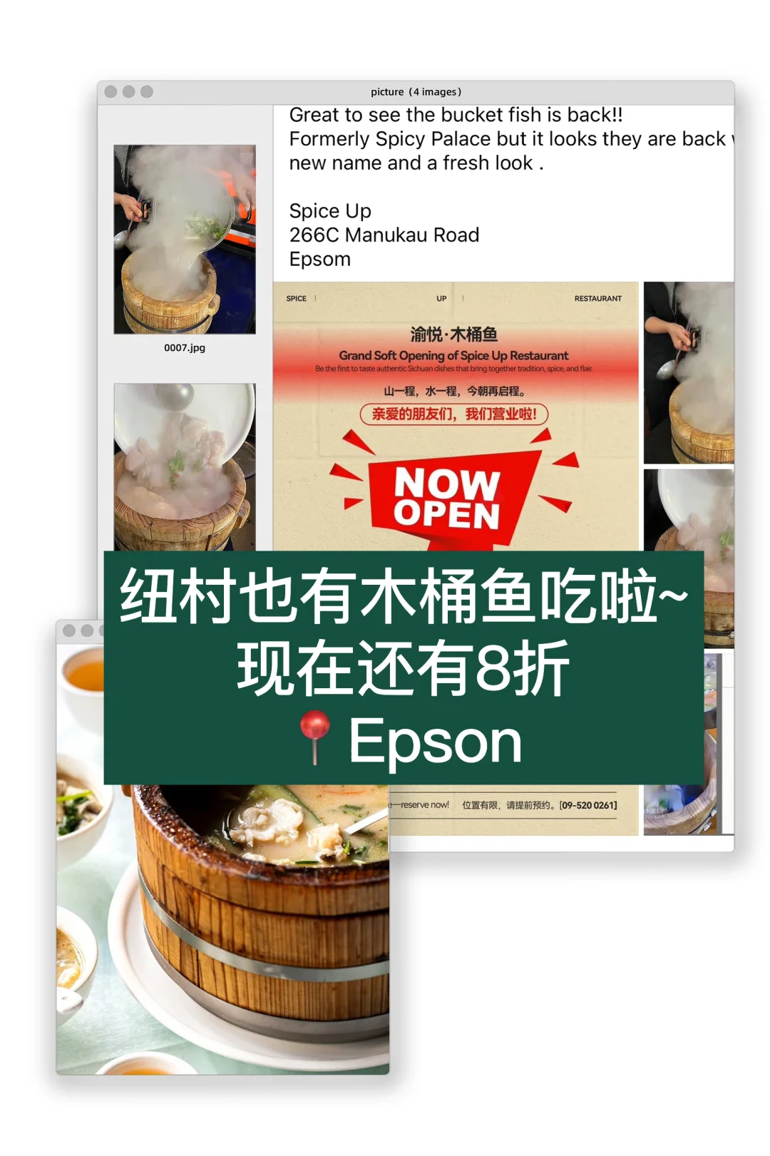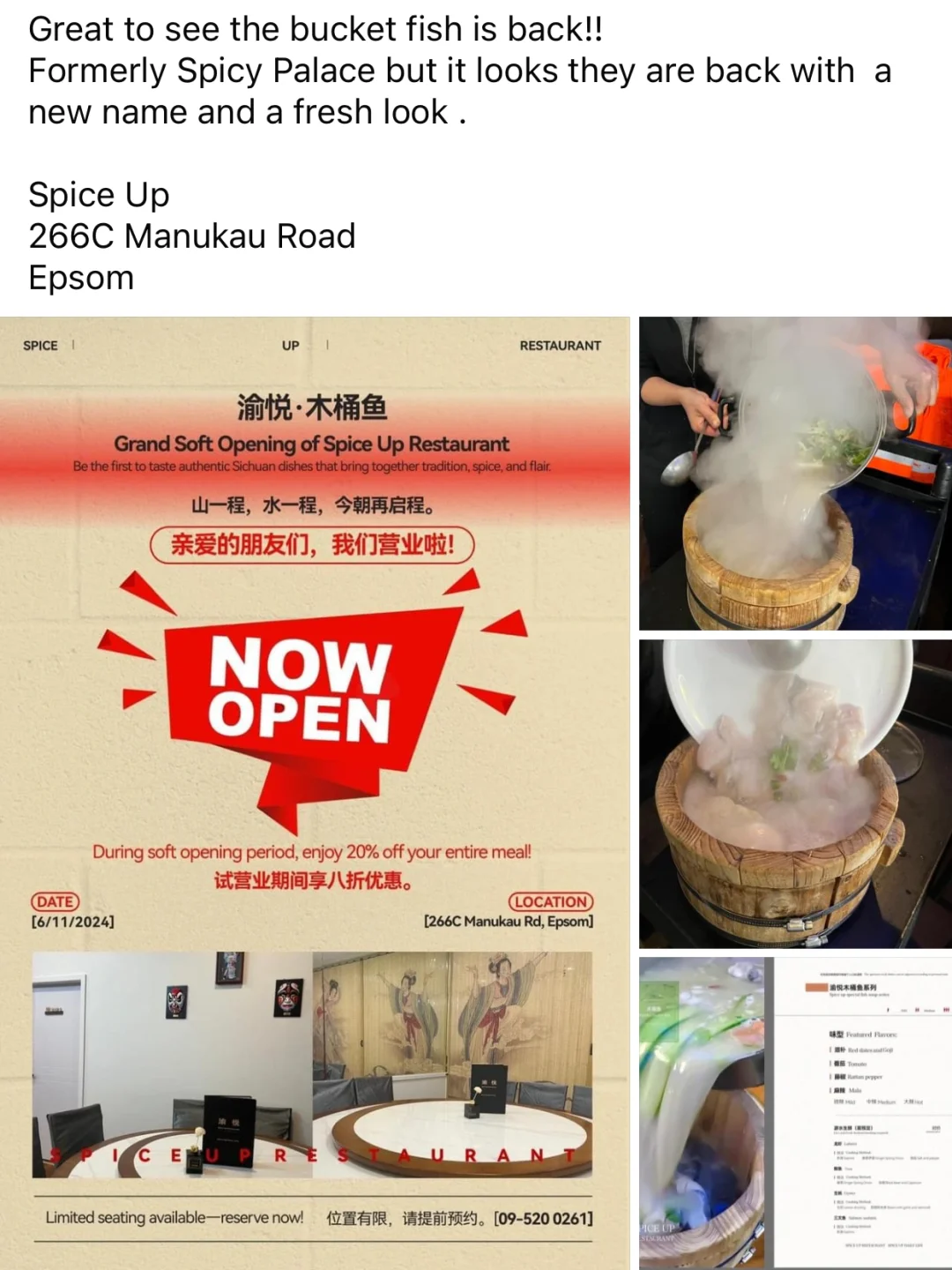 纽村可以吃到木桶鱼啦[哇R]有点小期待[暗中观察R] 坐标📍266C Manukau Road,Epsom Spice Up 新开营业期间8折,赶紧去尝鲜[派对R] 关注我,下一篇更精彩
