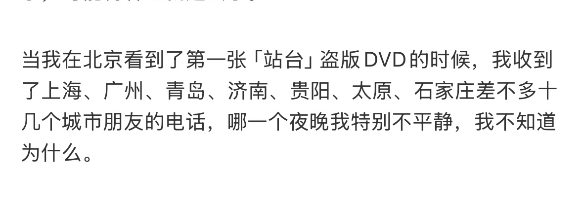 #贾樟柯呼吁抵制风流一代盗版# 贾樟柯:我想还是需要和大家说一下:作为拍电影的人,我有一个卑微的请求。大家如果有条件、有兴趣,《风流一代》的第一次体验还是留给电影院吧。感谢!