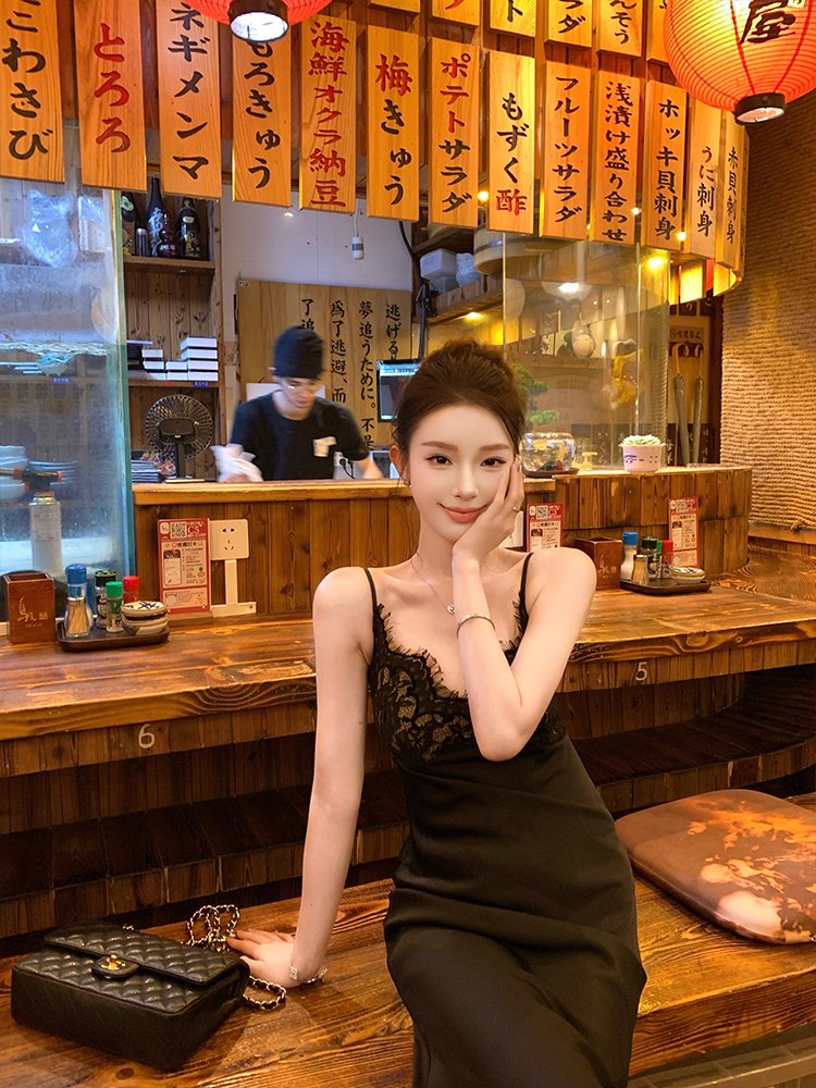 钓系约会裙赫本风打底内搭辣妹性感黑色吊带连衣裙新款女秋冬