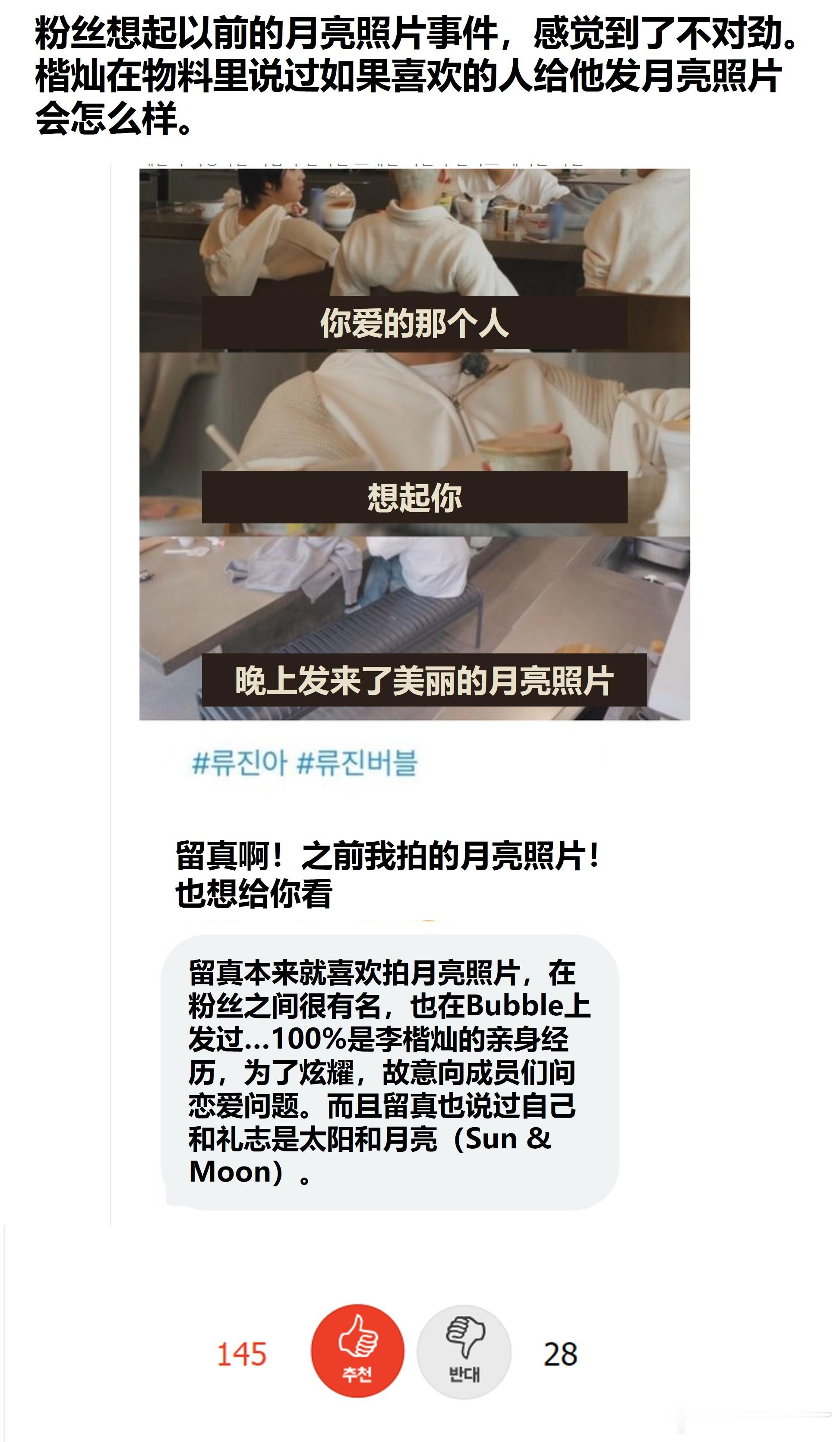 还提到之前楷灿在物料里说过如果喜欢的人给他发月亮照片会怎么样,而留真也很喜欢拍月亮照片