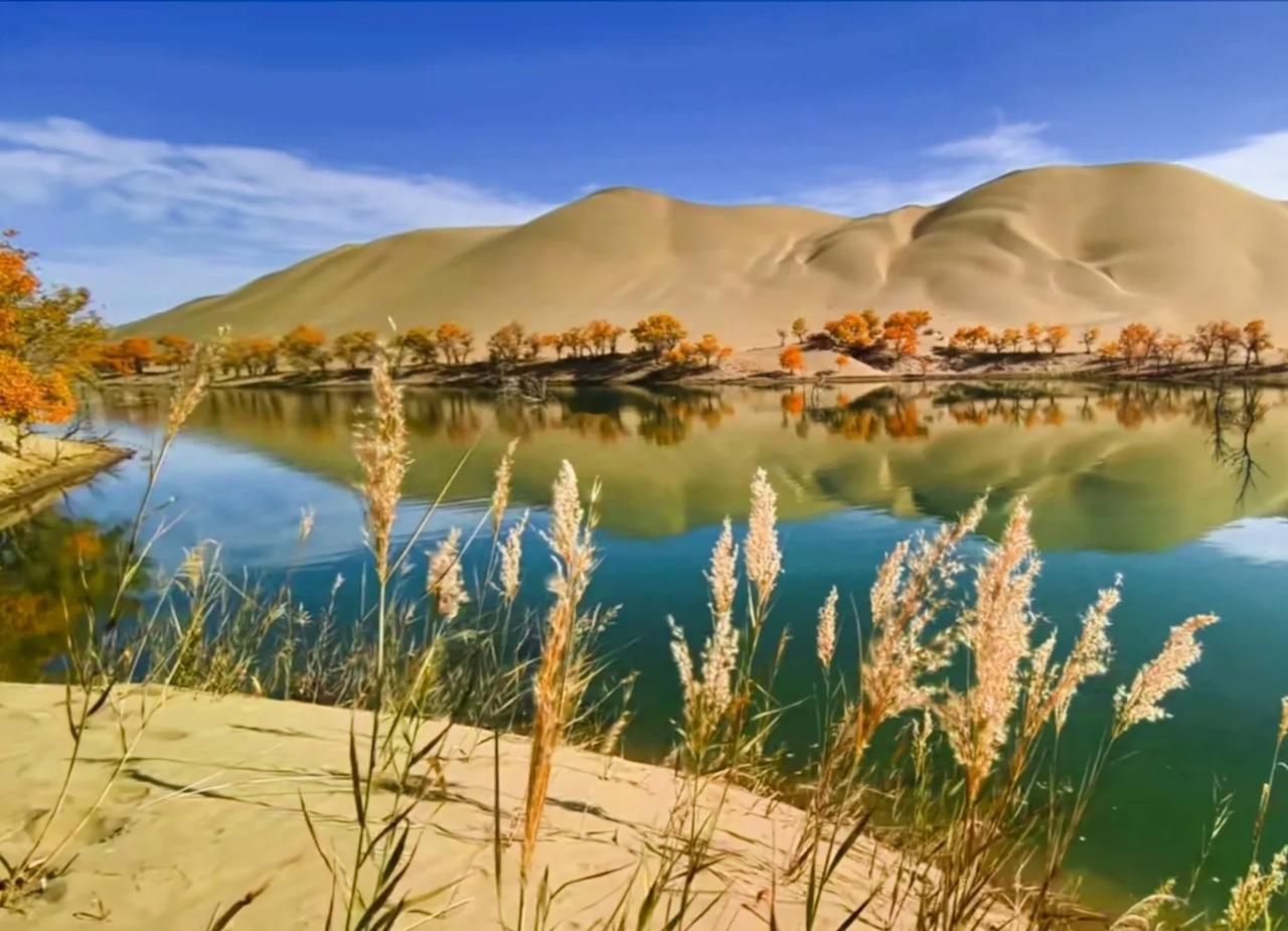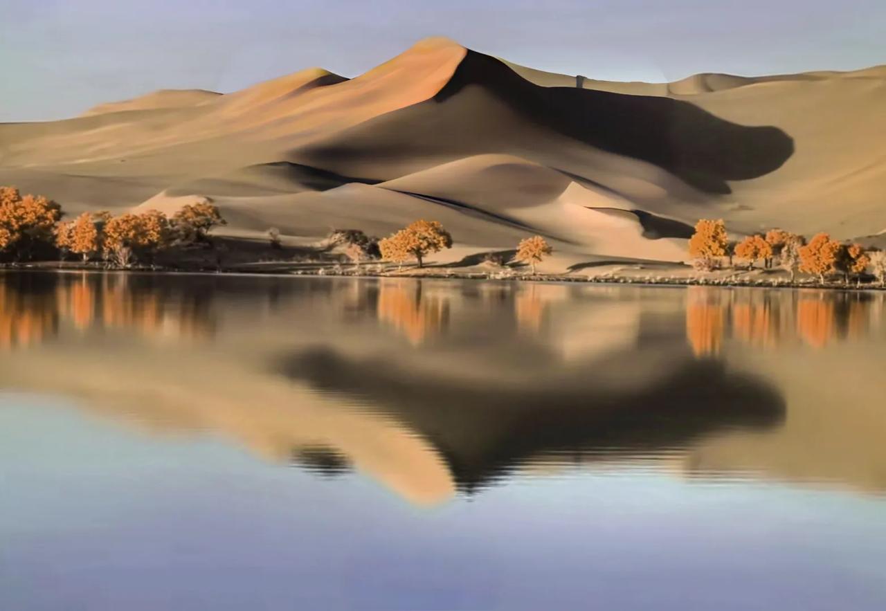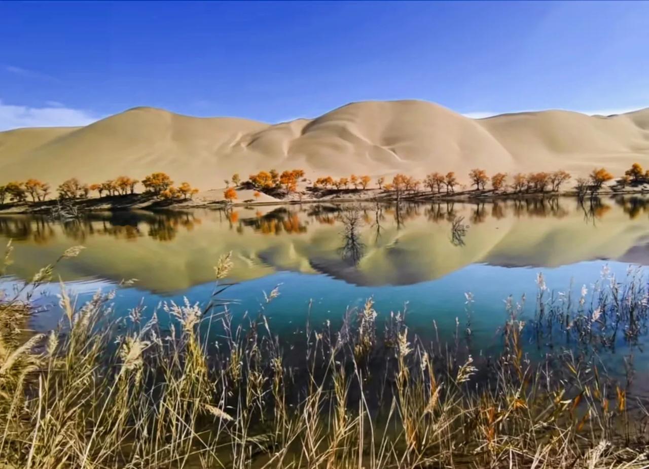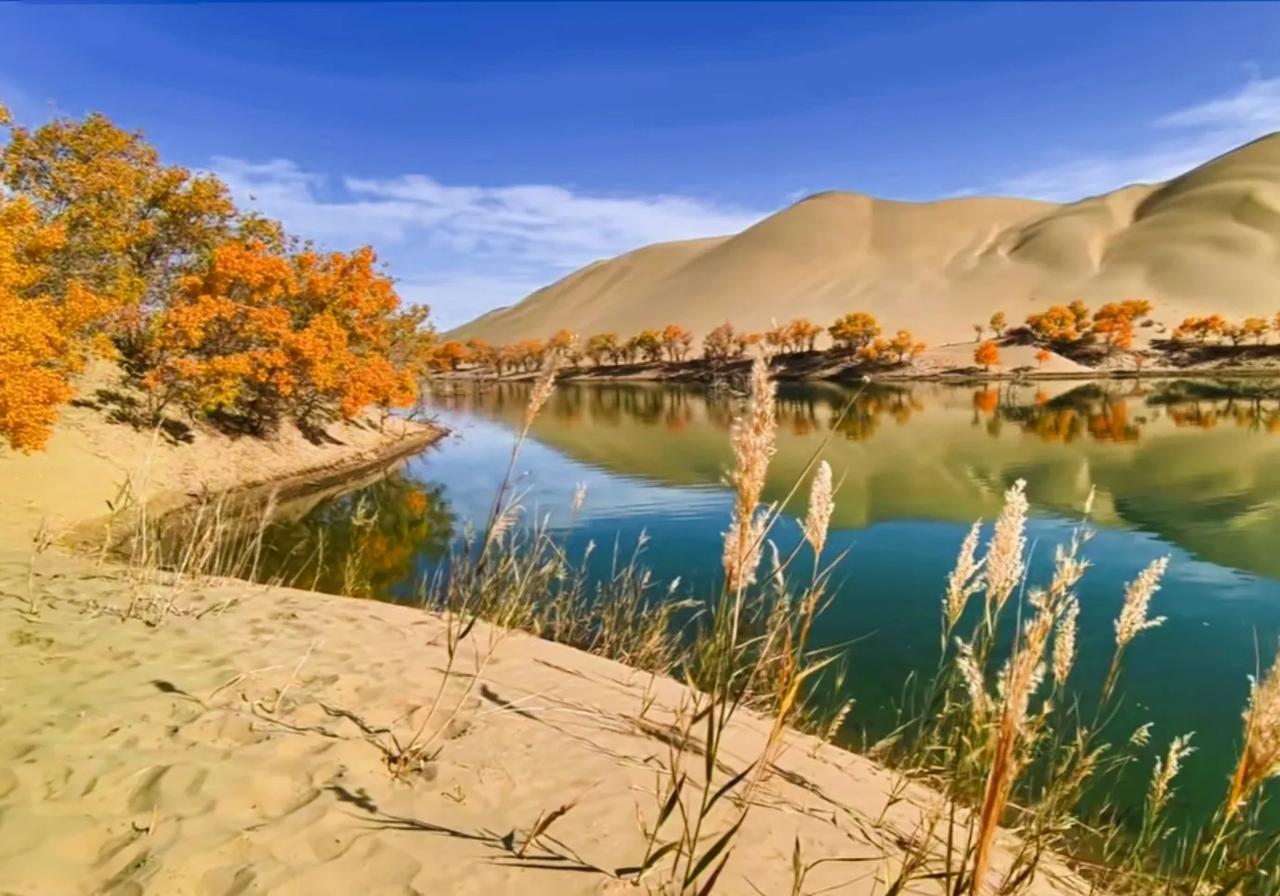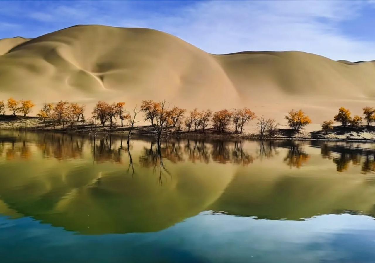 当沙漠胡杨邂逅秋水蓝天,那个美简直就是无法形容!能夠看到真的是三生有幸啊!