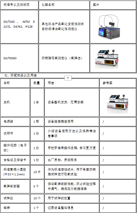 该仪器按 SH/T 0060 标准要求设计,包含氧弹、压力表、恒温油浴、精密控温系统等,满足标准规定的试验条件与操作流程。 将试样放入 99℃、充 760kPa 氧气的氧弹中氧化,100 小时后通过压力降判断吸氧程度。