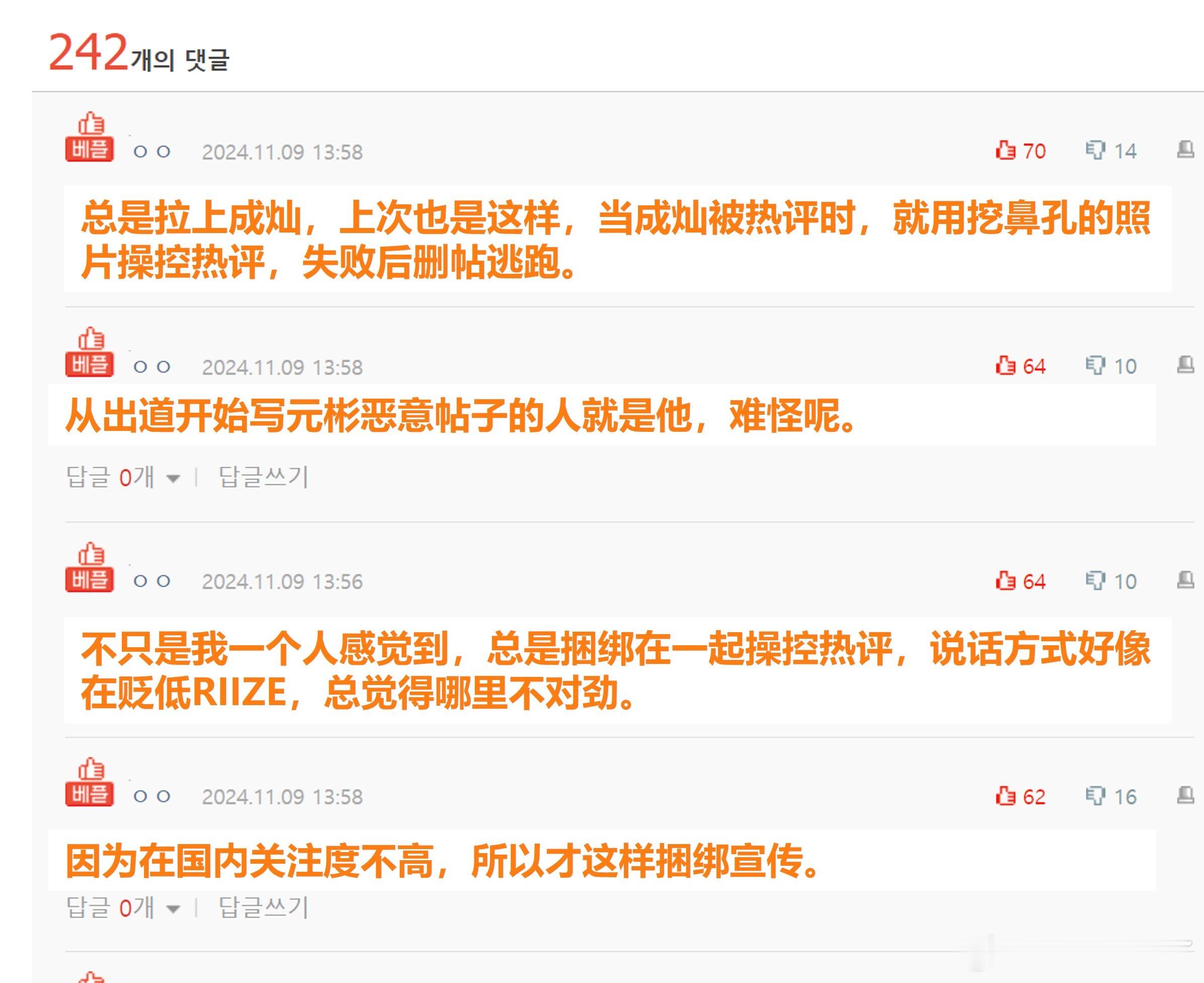 热评区对楼主说的认证,甚至从出道开始就一直在写元彬的黑贴,这个人似乎在pann很有名,会在DC gallery直播发帖和热评操控的过程,有的说他是楷灿粉丝也有说这个人就爱故意挑拨离间