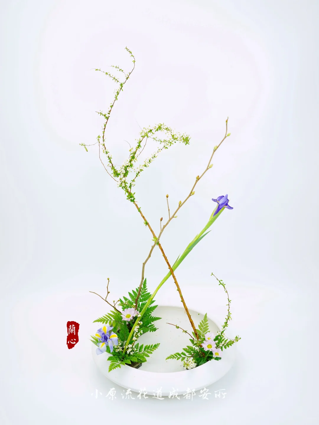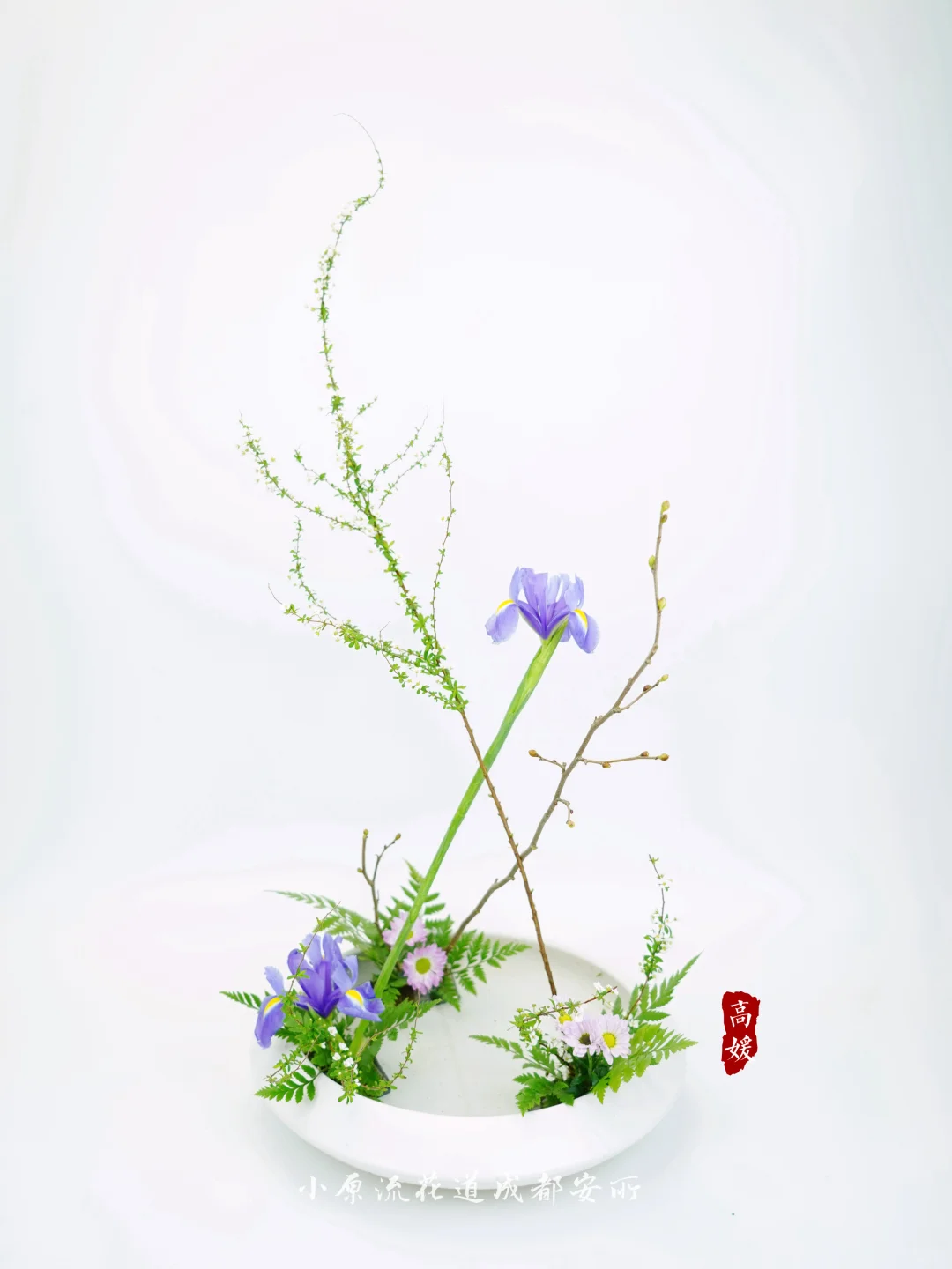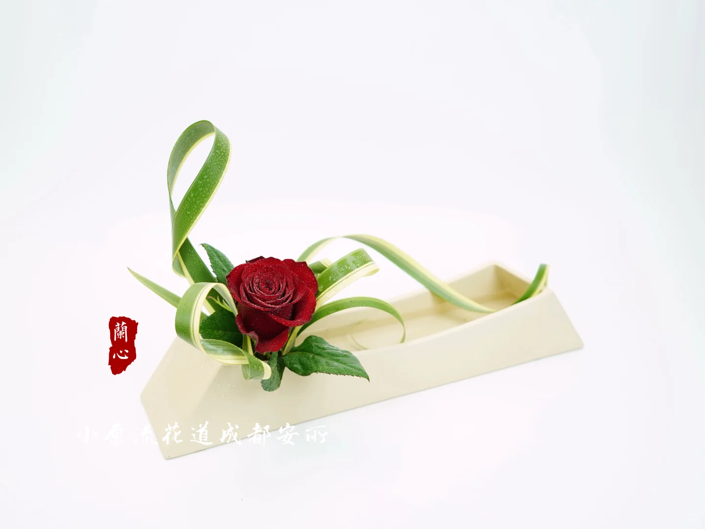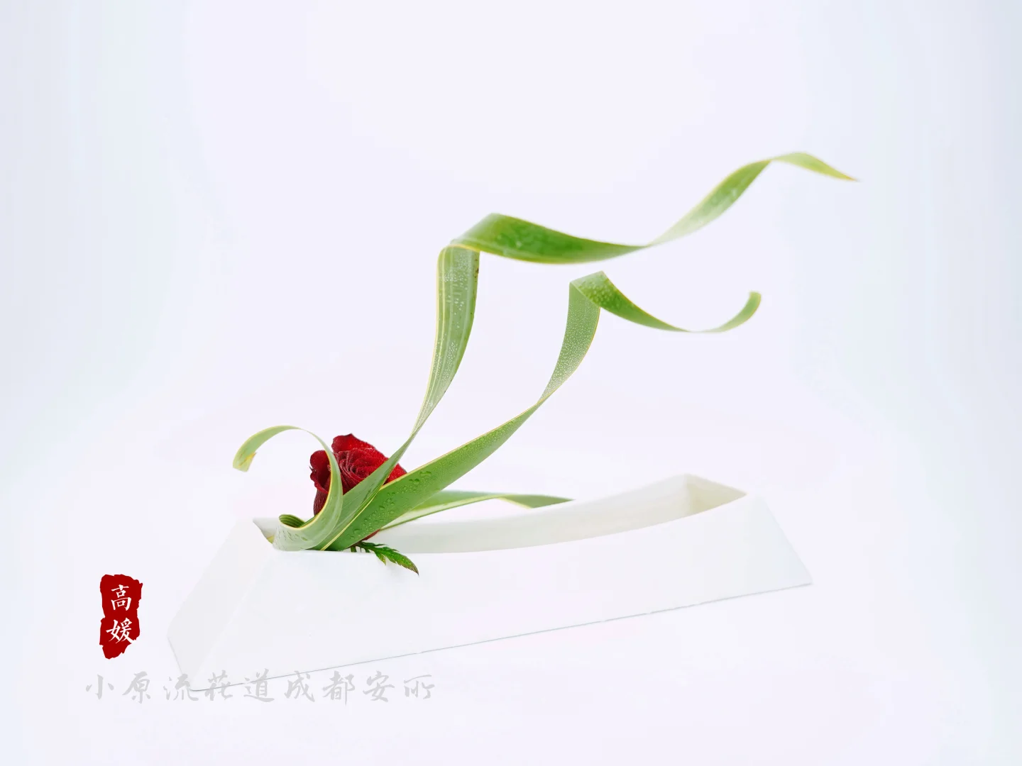 枝条纤细,增加了长度,很好的利用,跳跃灵动,仿佛随风而舞,舒展而大气!白黑色花器,中和玫瑰的红色,使主客融合,有春色盎然之感。