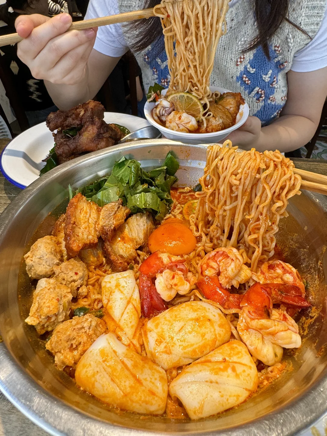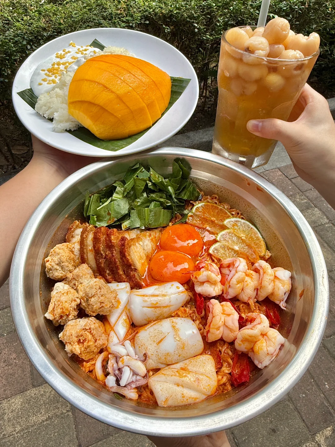 好泰!!! mama面脸盆这么大🤨 还挺好吃的和好朋友一起share 芒果糯米饭、龙眼冰、打抛饭😋 都好戳我胃口!!