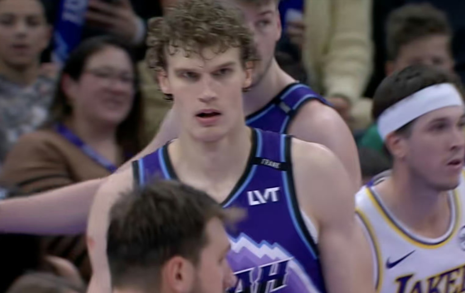 别看马尔卡宁最后时刻连得8分颇为吓人,但全场只有20分。今天真正撑着爵士没被湖人一波带走的是这位新版猪猪侠,全场27分5板8助,加上前一场在洛杉矶的34分4板8助,算是打湖人发挥最好的爵士球员。