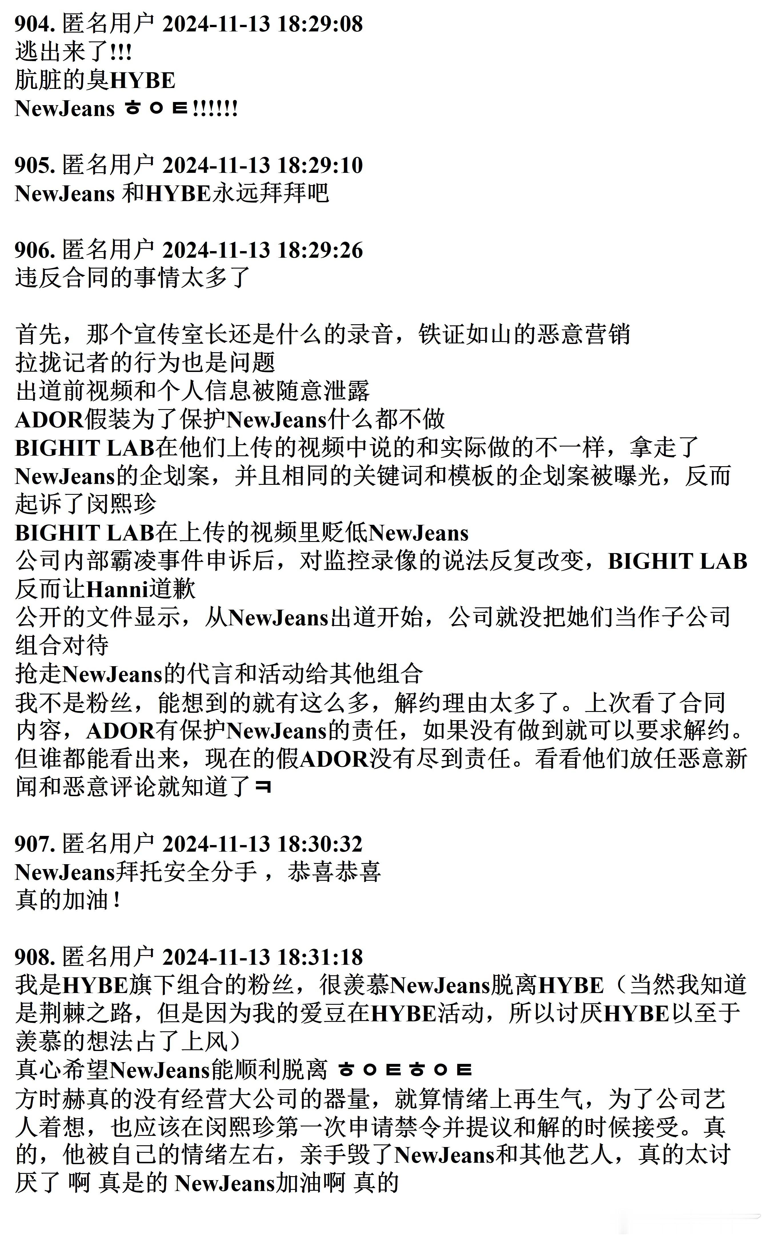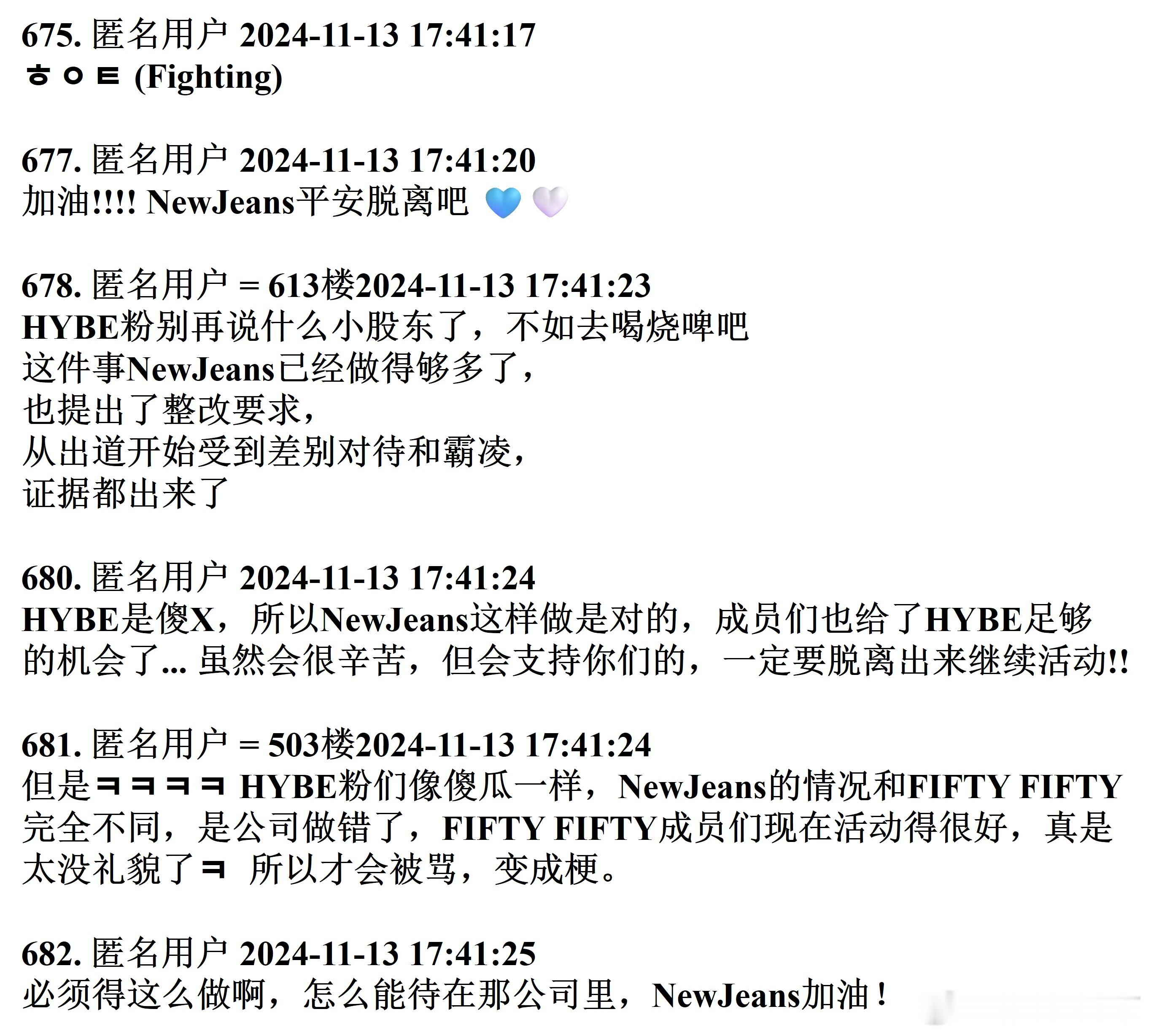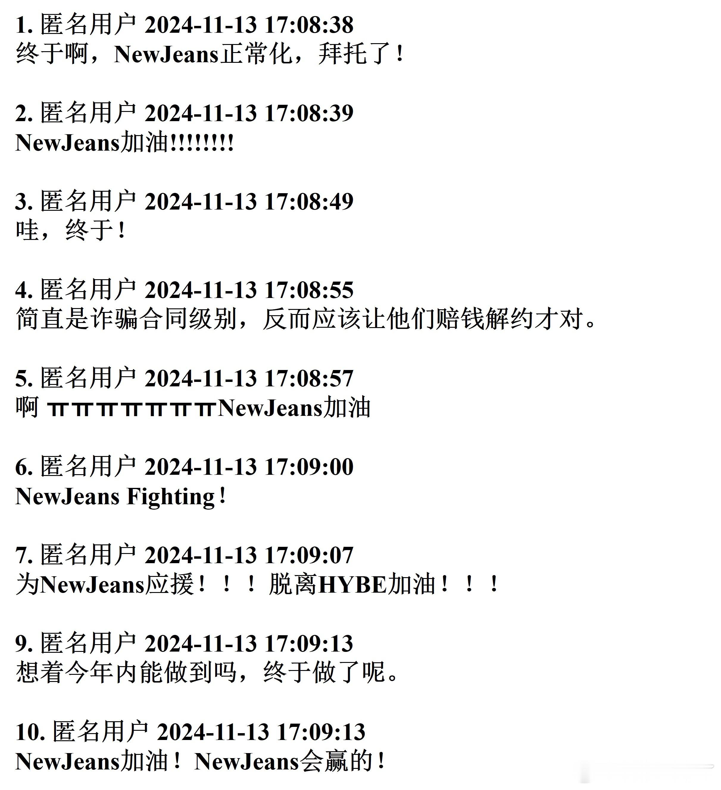 评论区说的最多的就是NewJeans Fighting!还有终于要解约了,希望安全解约。