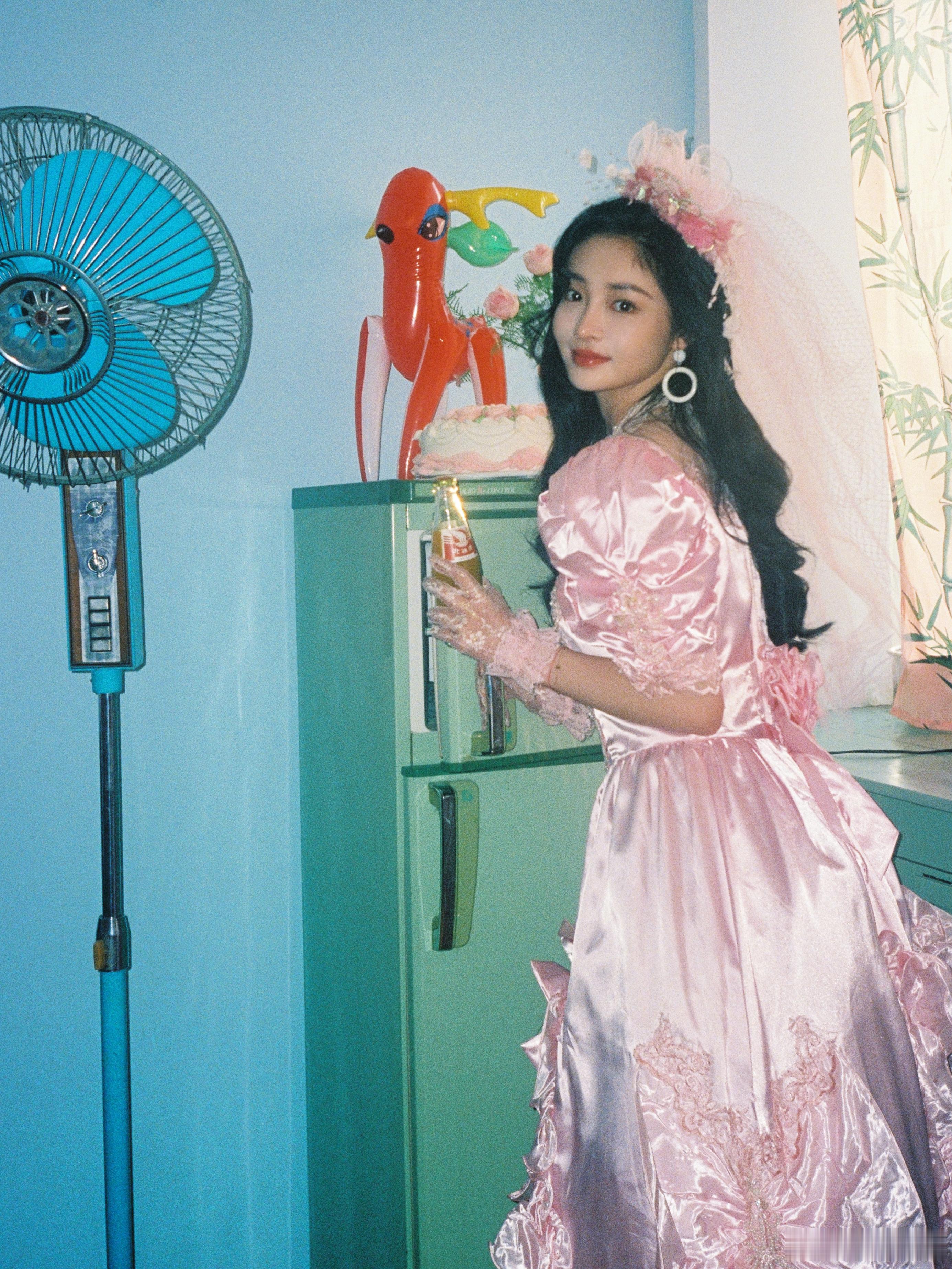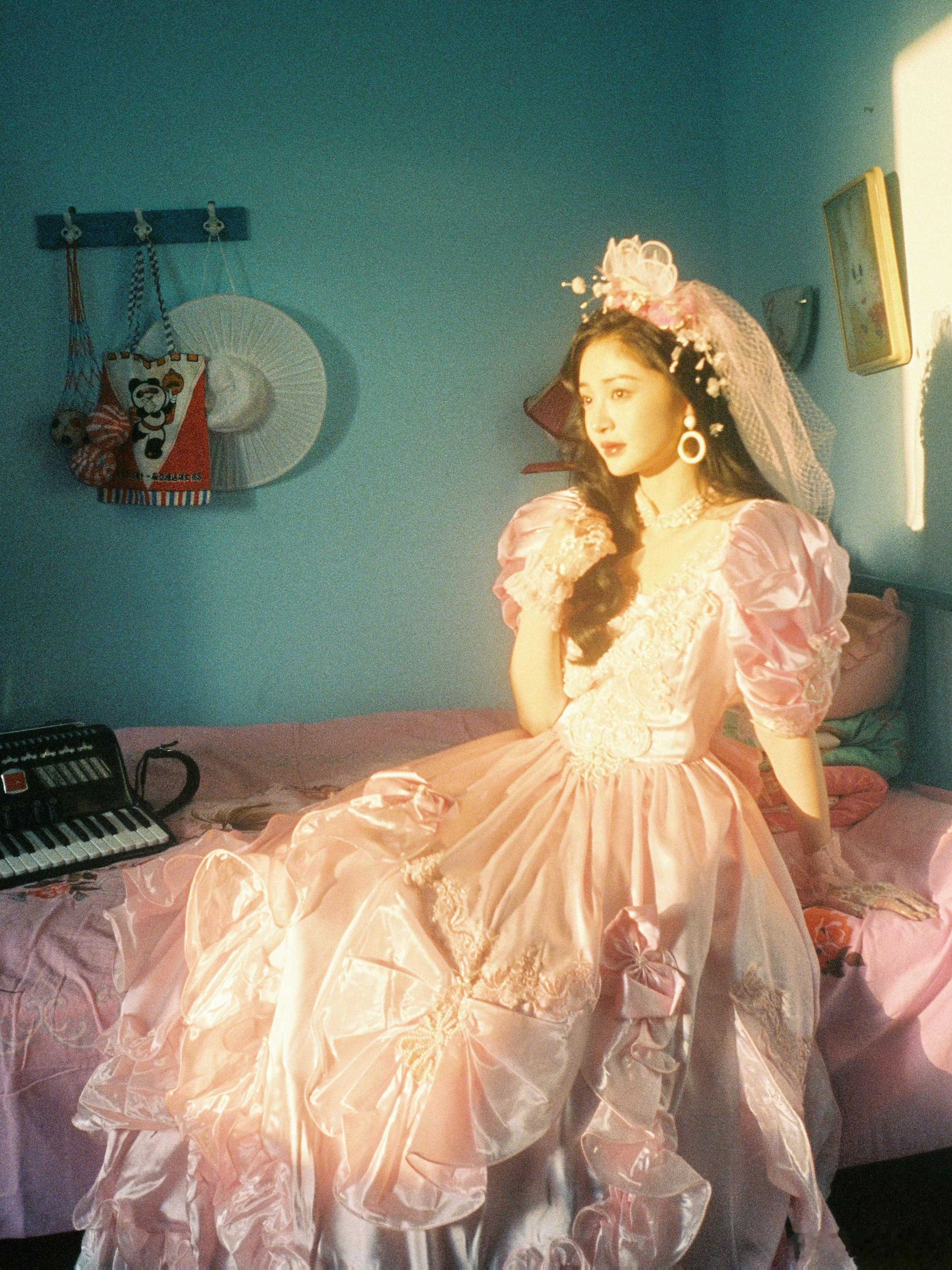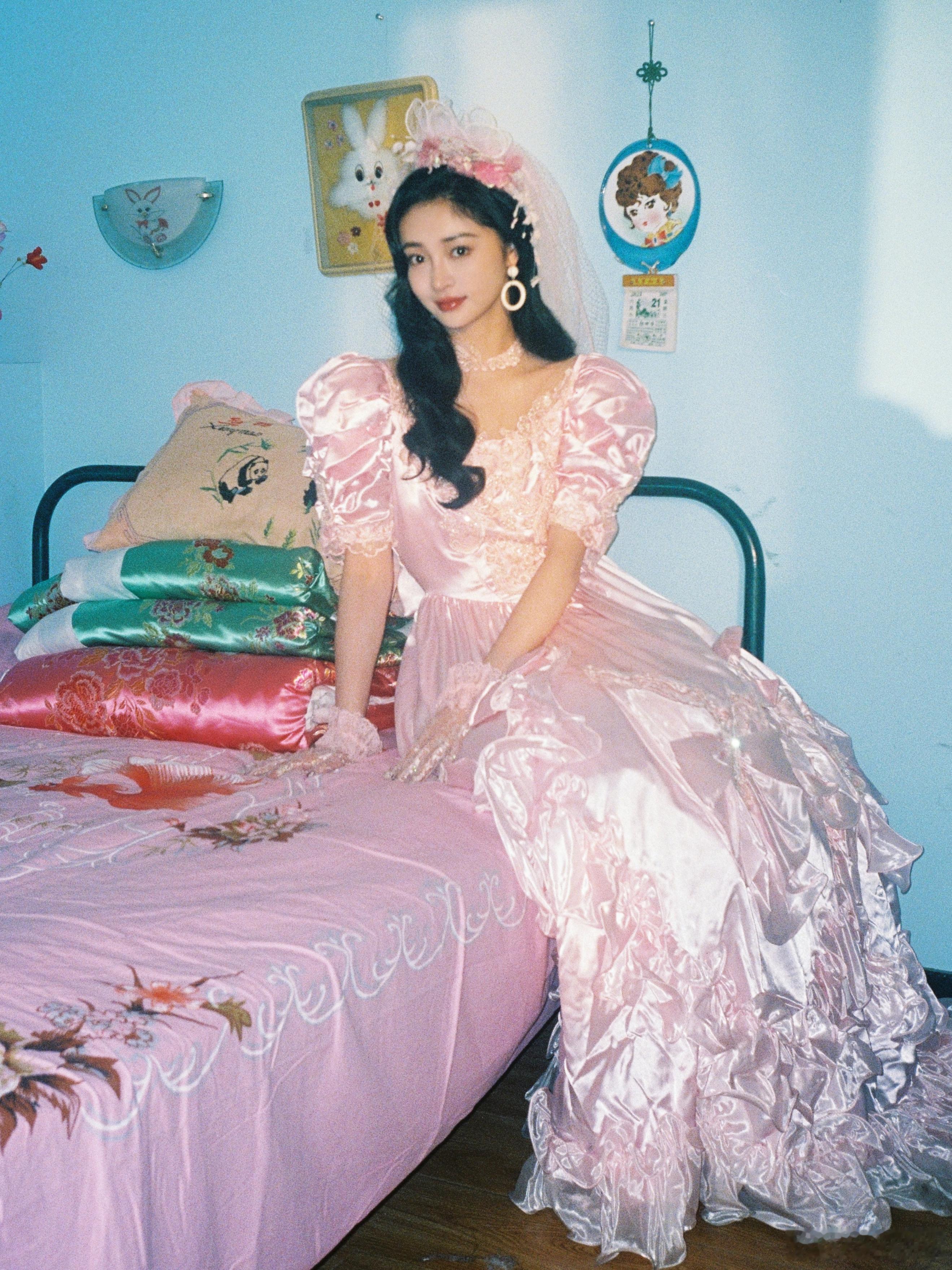 #周洁琼80年代新娘妆#周洁琼这婚纱写真绝了,粉色缎面超浪漫!剧里姗姗也嫁人了,