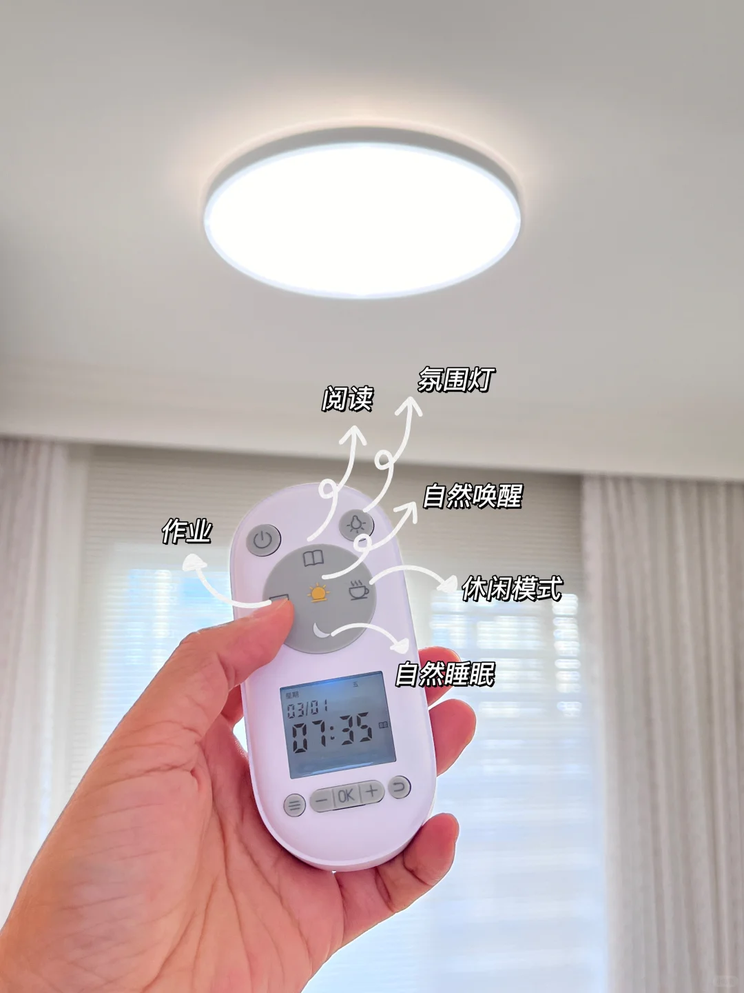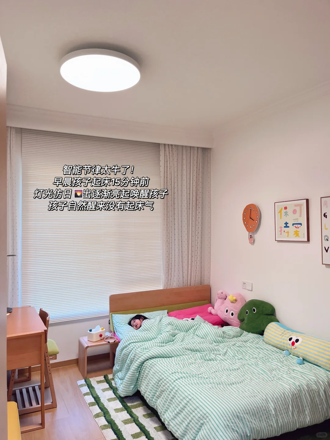 除了显指≥95、蓝光RG0豁免伤害级别、无可视频闪等这些护眼硬指标以外!它居然有智能节律功能!能模拟太阳光的日出🌅日落🌄!早晨孩子起床15分钟前,灯光就仿日出逐渐亮起,唤醒孩子,孩子自然醒来没有起床气!比起⏰闹钟的突然叫醒好太多了!睡前仿日落逐渐熄灭,孩子安心入睡,养成良好的自然睡眠💤习惯。
