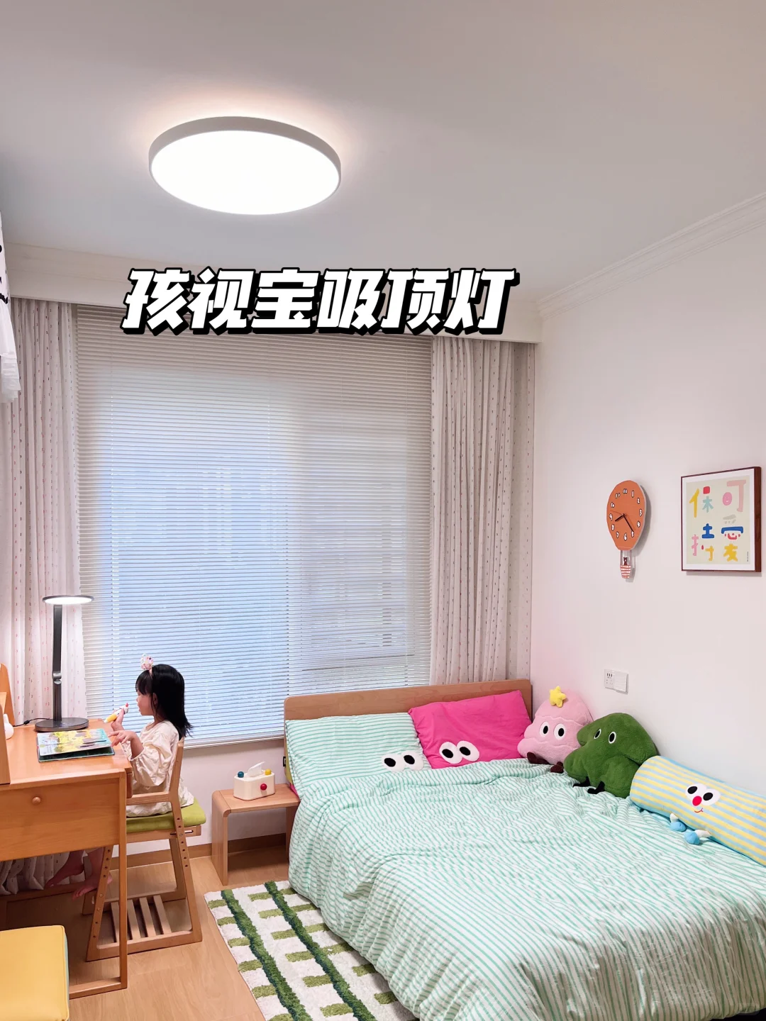 吸顶灯不压层高,会比吊灯更显空间大,但考虑到孩子喜欢待在儿童房,所以这次儿童房换吸顶灯,我不光看颜值,更在意它是否足够护眼!对比后,果断选了孩视宝吸顶灯!毕竟是专门做护眼灯的国民老品牌了,不是那种贴牌的,所以用得更放心!