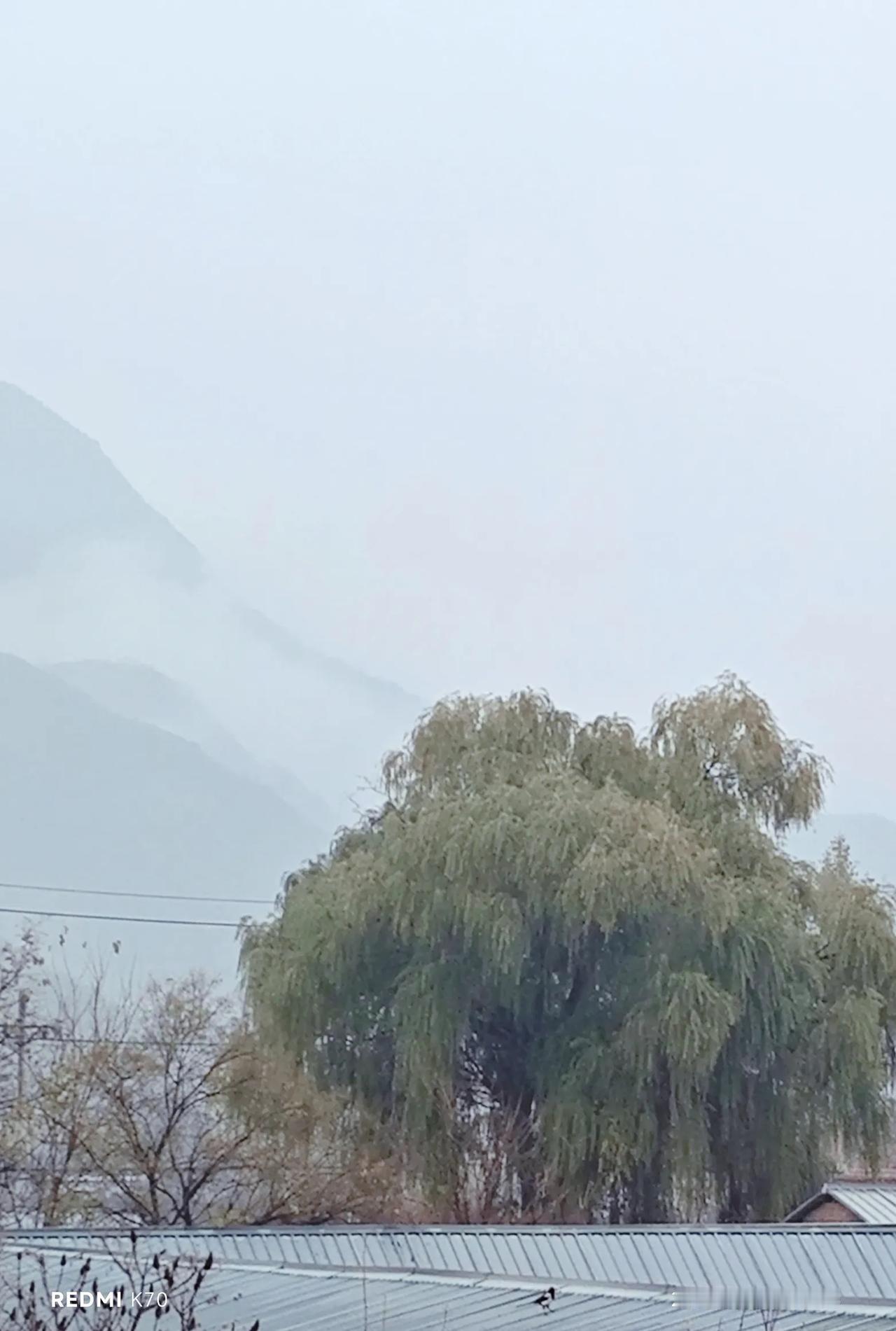 昨日北京密云,秋雨绵绵,云雾飘渺。山在雾中,雾在雨中,雨在空中,一切的一切皆入眼