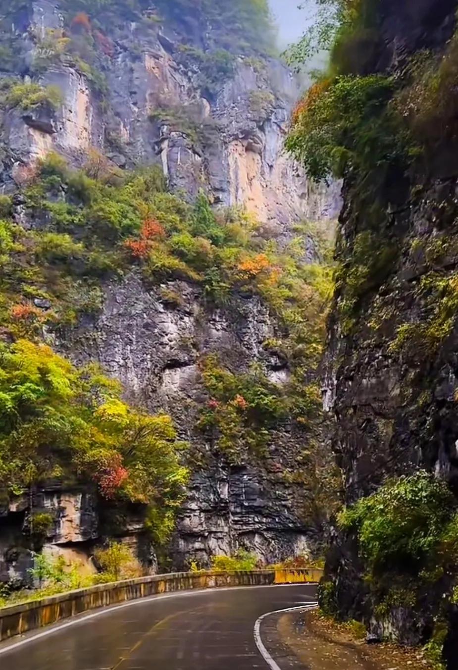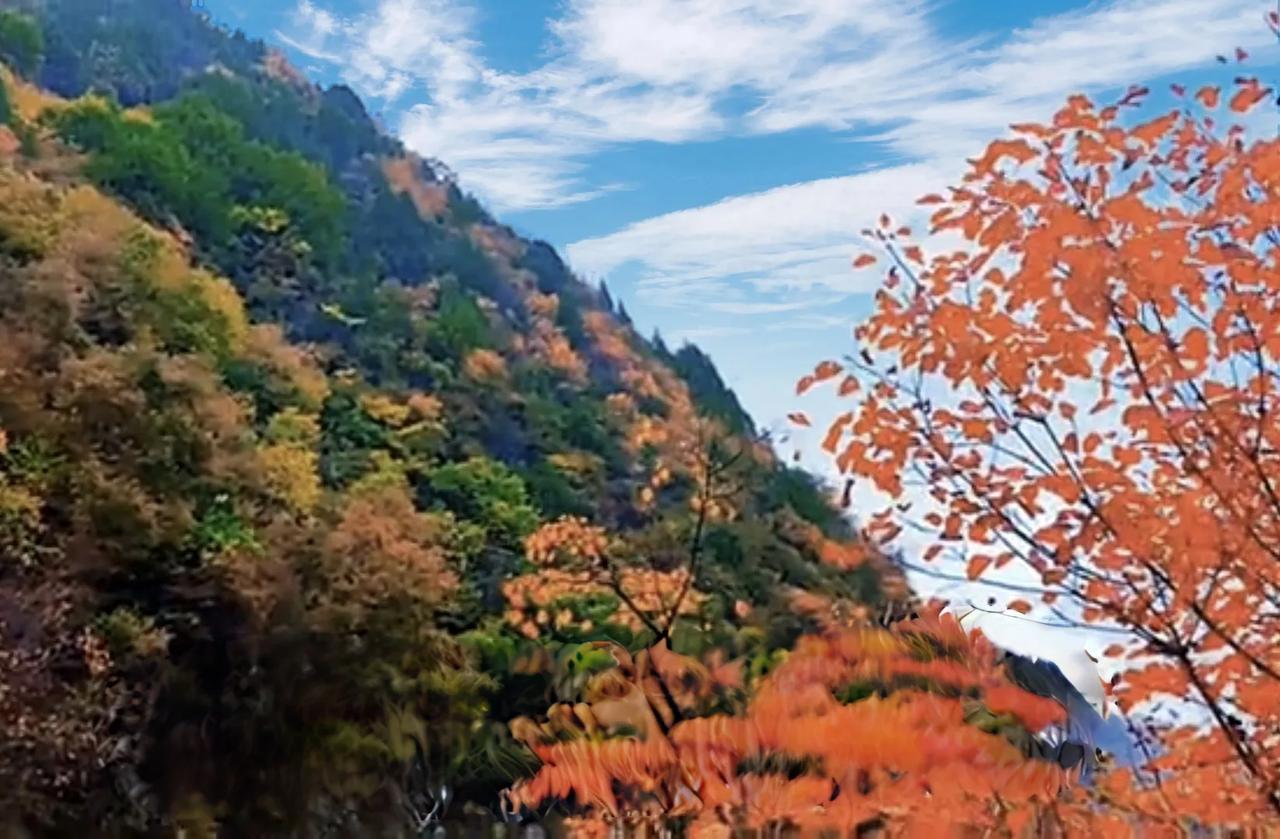 秦岭,初冬秋色,好一幅壮美的山水油彩画。