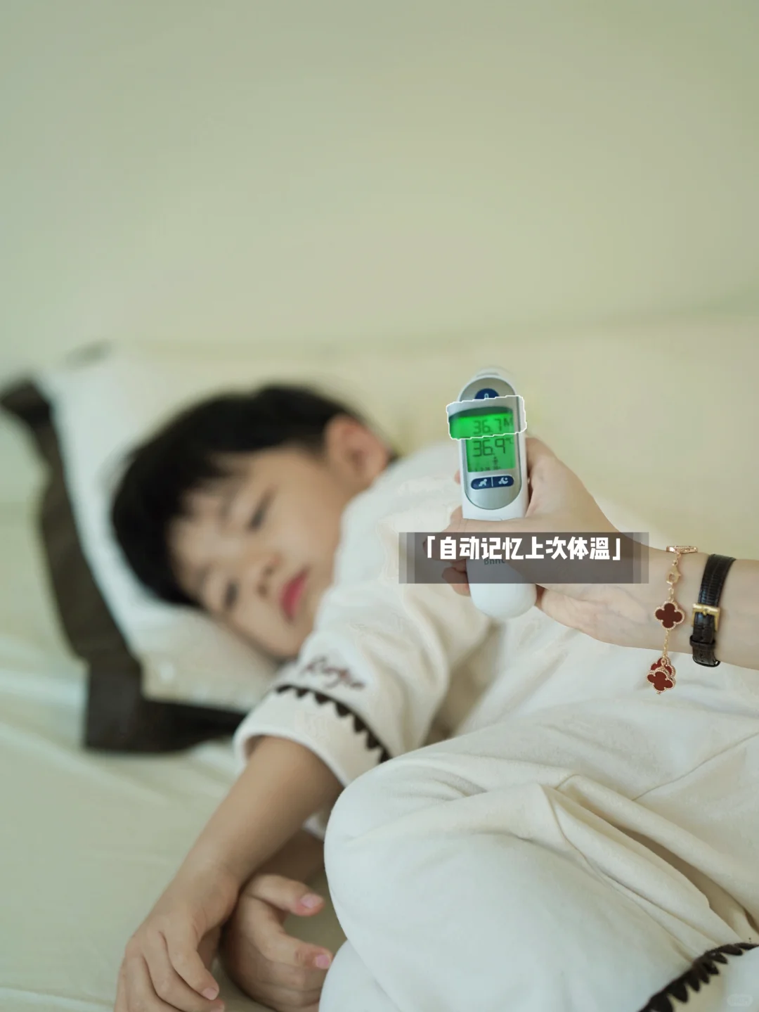 这不秋冬换季,小家伙又给超人妈妈来了点冲关挑战,天天喷嚏不断、有天夜里突发高烧不退我赶紧拿出博朗耳温枪换上新的隔耳套给宝宝测温,测完看到显示屏是红色就赶紧进入“战备状态”,这可是高烧提示!幸好的是,给宝宝物理降温后再测,和耳温枪记忆的上一次温度对比,看到体温也慢慢降了下来。
