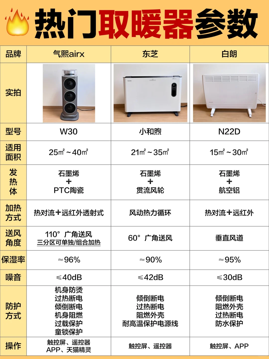 🌈选了3款销量与口碑都靠前的取暖器👉气熙airx W30取暖器、东芝小和煦、白朗N22D进行实测,给需要的宝子一个参考哦~