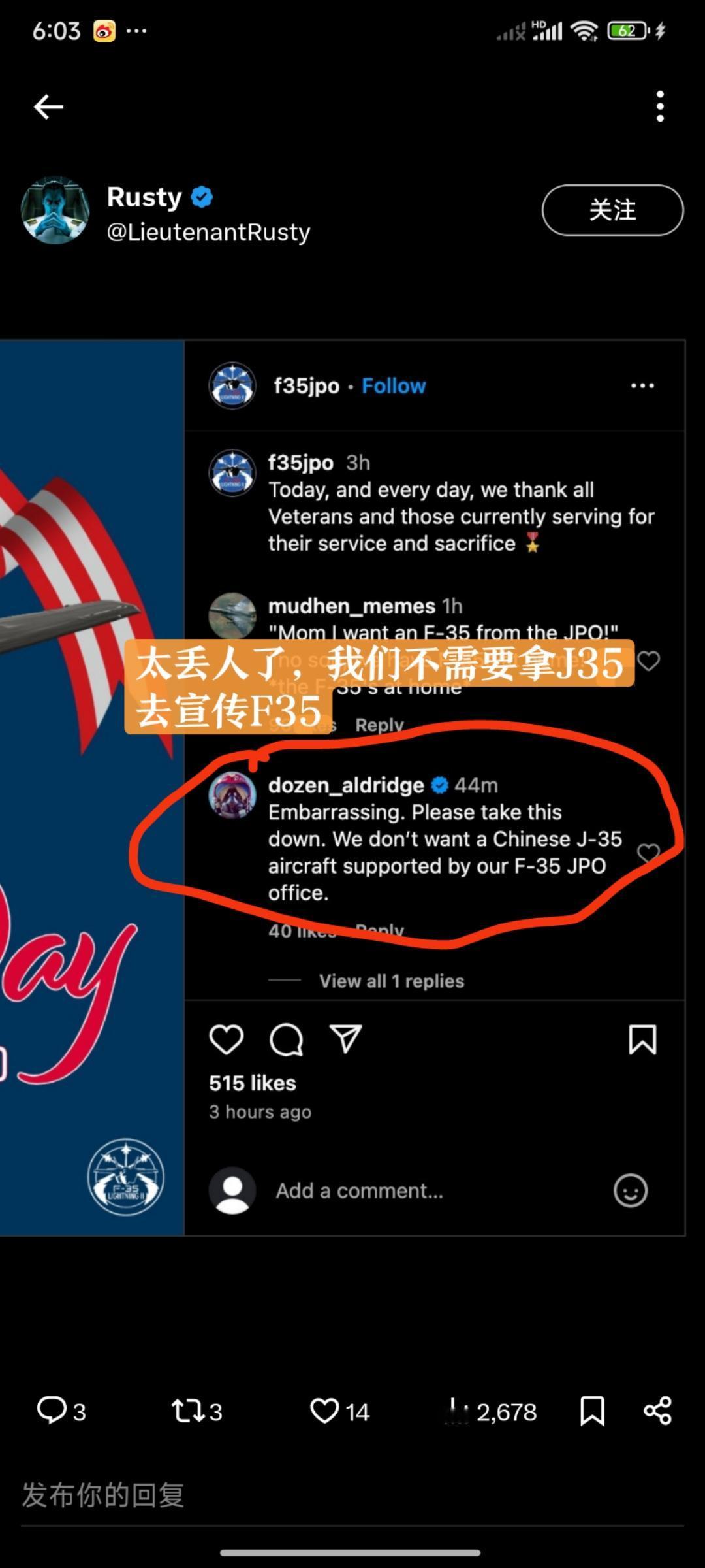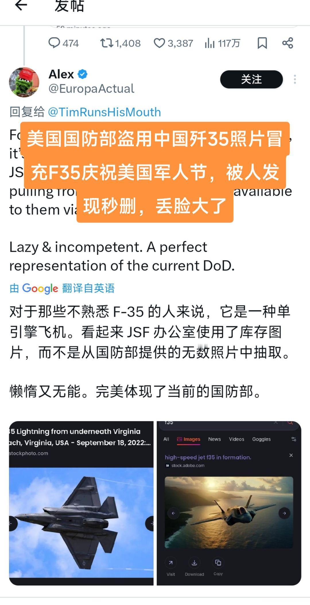 美国国防部盗用歼35飞机宣传F35,丢脸大了之后图片秒删,疯狂控评看世界