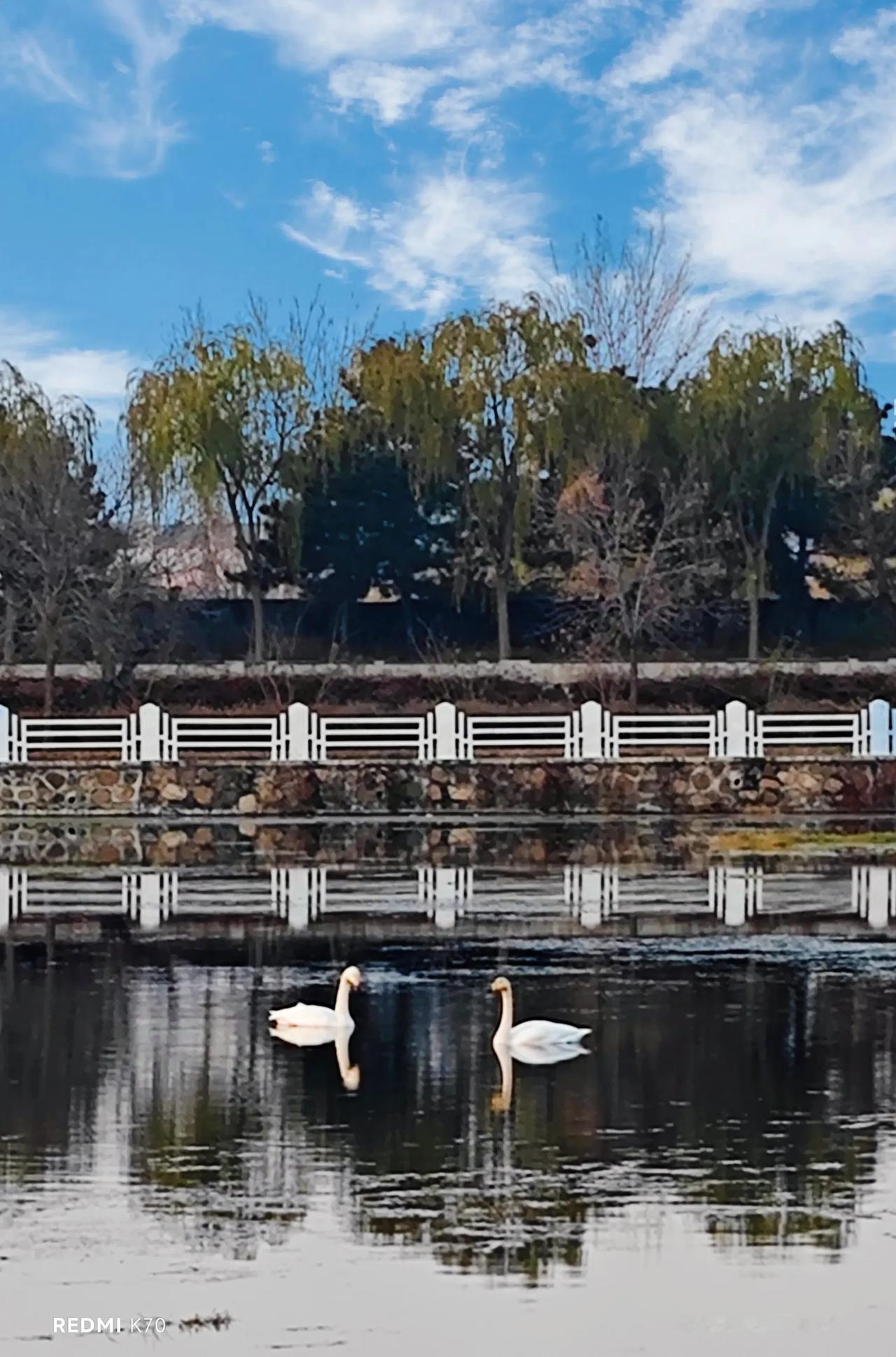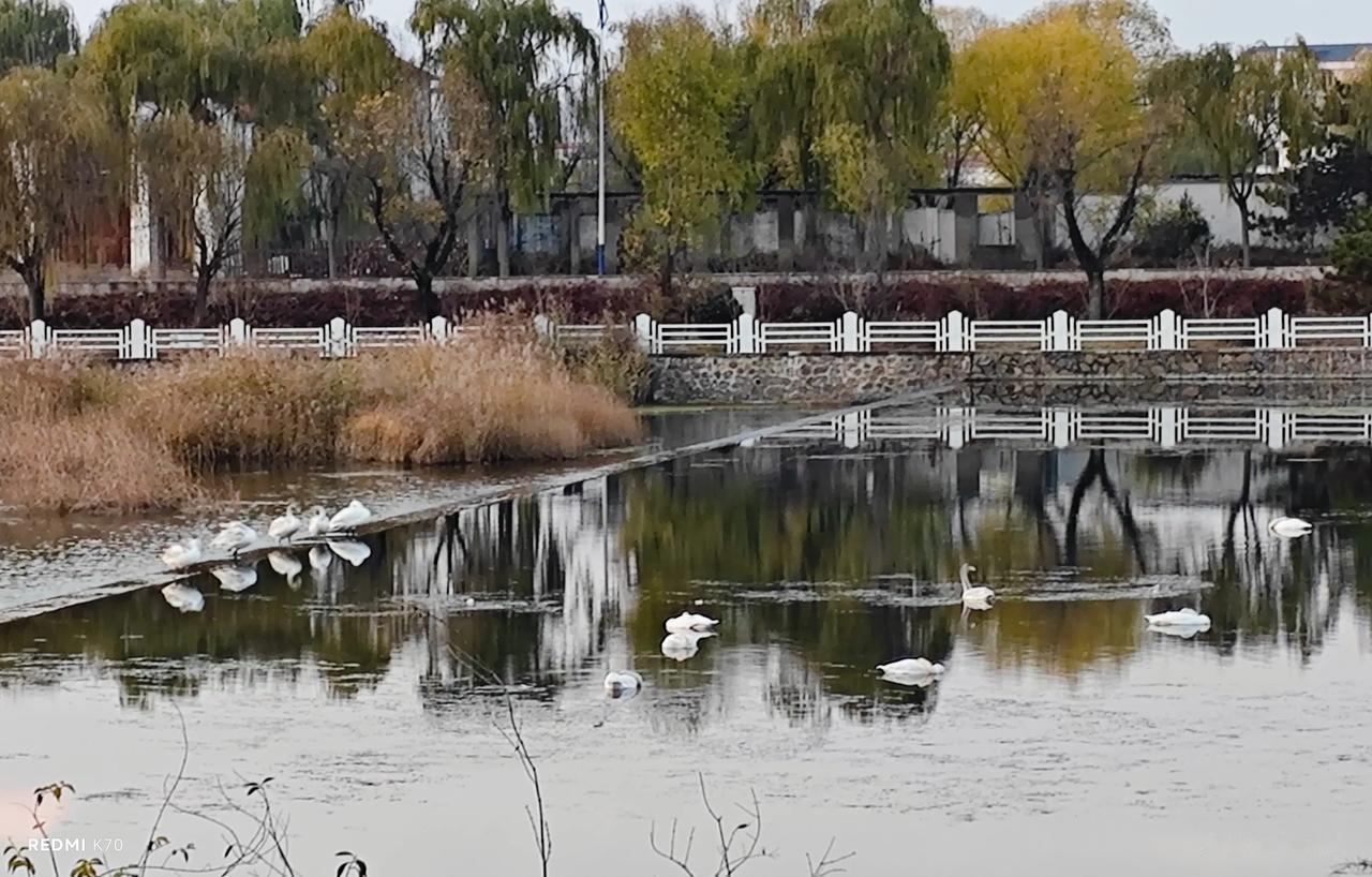 昨日傍晚打卡清水河,一轮明月挂在东边佛山的天际上,数十只白天鹅有的在觅食,有的在