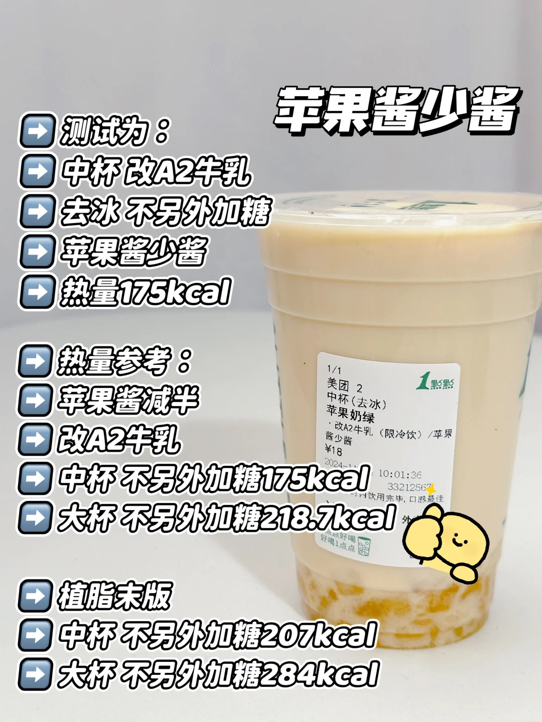 但升糖真的太猛了❗即使苹果酱少酱也还是挺刺激血糖的,有控糖需求的宝子就不要挑战啦[扯脸H]减脂的宝子我也建议要少喝😂