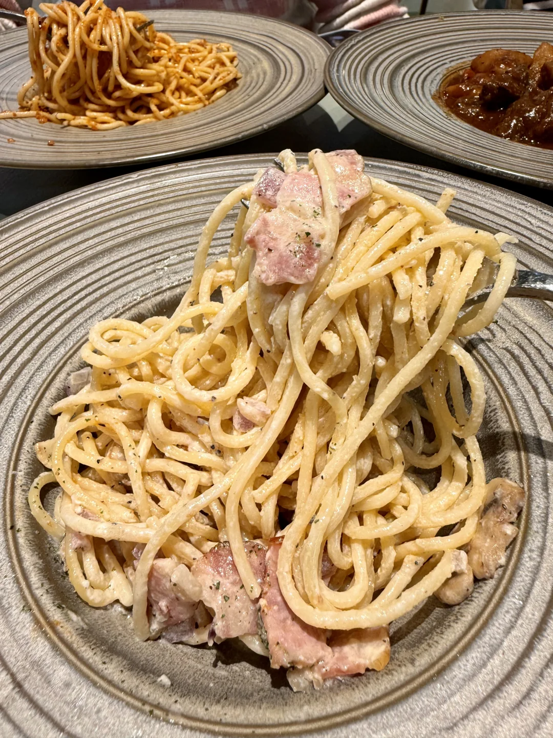 貌美又好吃!!份量都很大,重点好划算~太适合学生党和上班族来吃了☝️ 烤鱼岩蛋上桌一整个震惊!!蛋皮软嫩,一勺下去满满都是料!!泰式打抛饭嘎嘎香,培根意面也是我的爱🤤还可以自选diy搭配菜品~