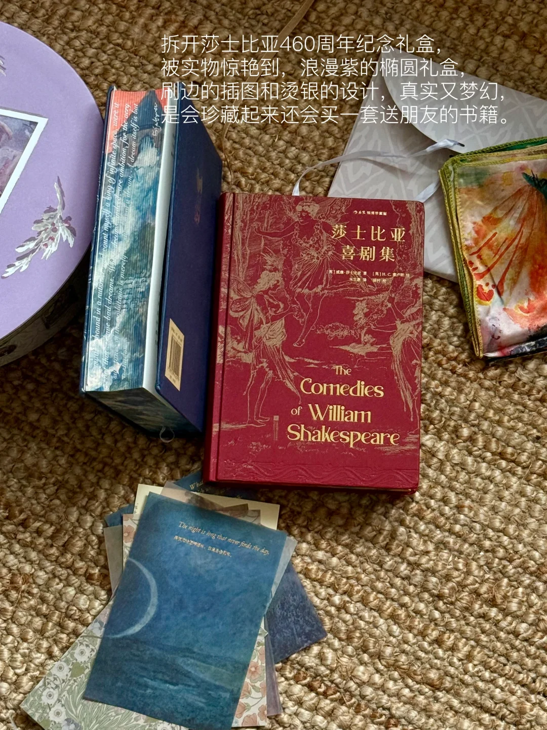 拆开莎士比亚460周年纪念礼盒,被实物惊艳到,浪漫紫的椭圆礼盒,刷边的插图和烫银的设计,真实又梦幻,是会珍藏起来还会买一套送朋友的书籍。