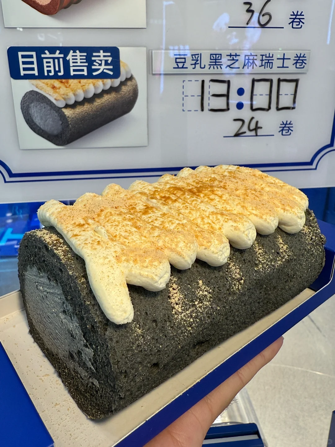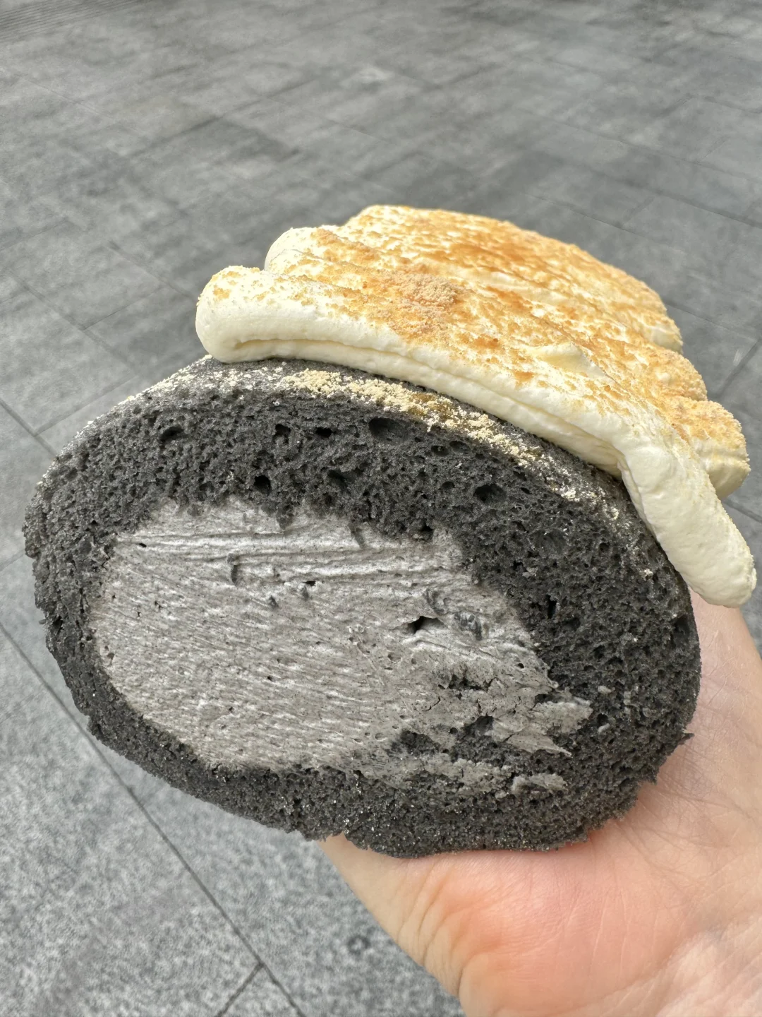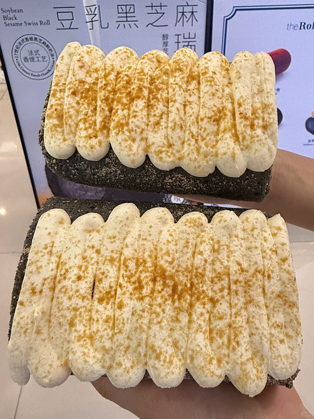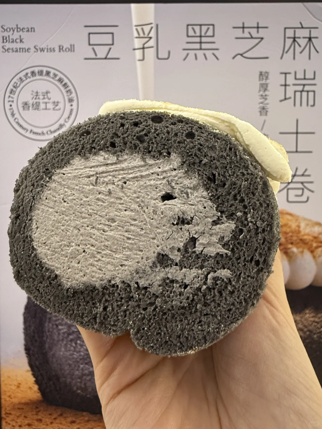 豆乳黑芝麻瑞士卷 感觉像在吃黑芝麻冰淇淋 好顺滑绵密🥹🥹