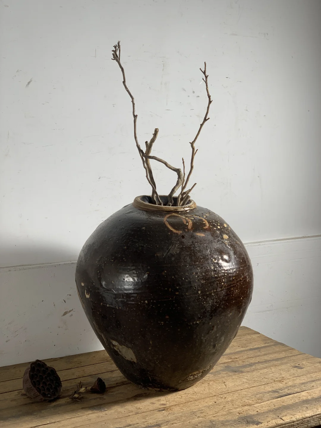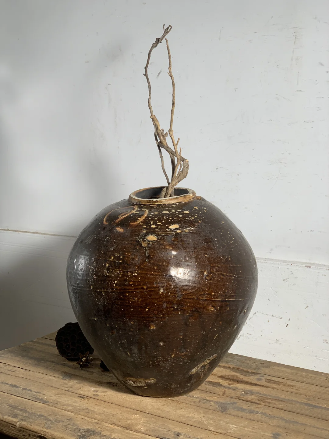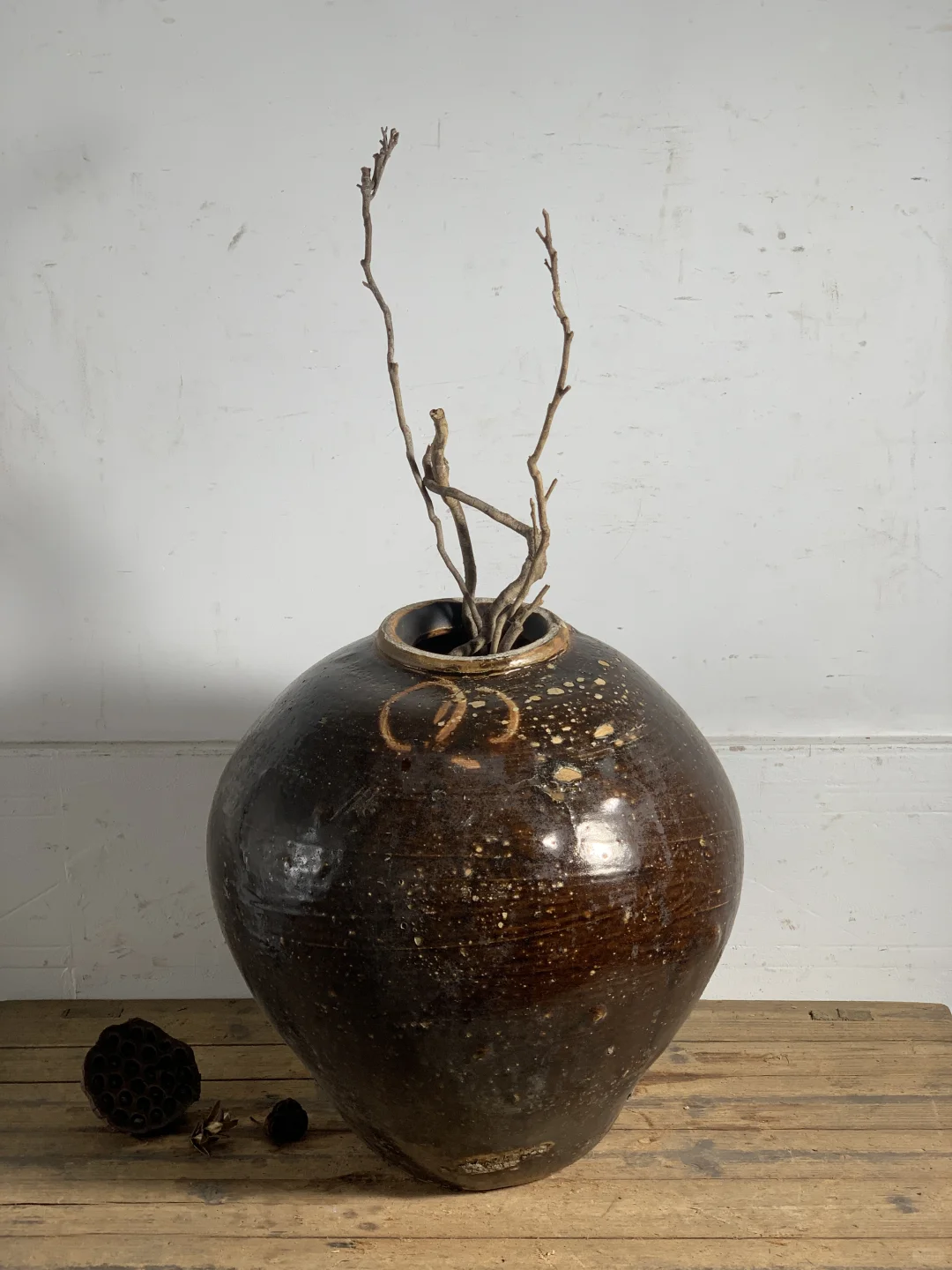 异形大肚罐;花艺插花;民宿、茶室、书房等极简侘寂摆件;35*35*42厘米高,口径8厘米宽。