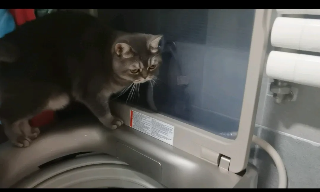 麻麻:“嘟嘟,你去哪儿啦?怎么找不到你了?”[震惊] 嘟嘟妹:“麻麻,我在这儿呢。” 麻麻:“哎哟,你还真能呢,怎么跑到洗衣机上面站着去了?你是飞檐走壁的‘超人’吗?