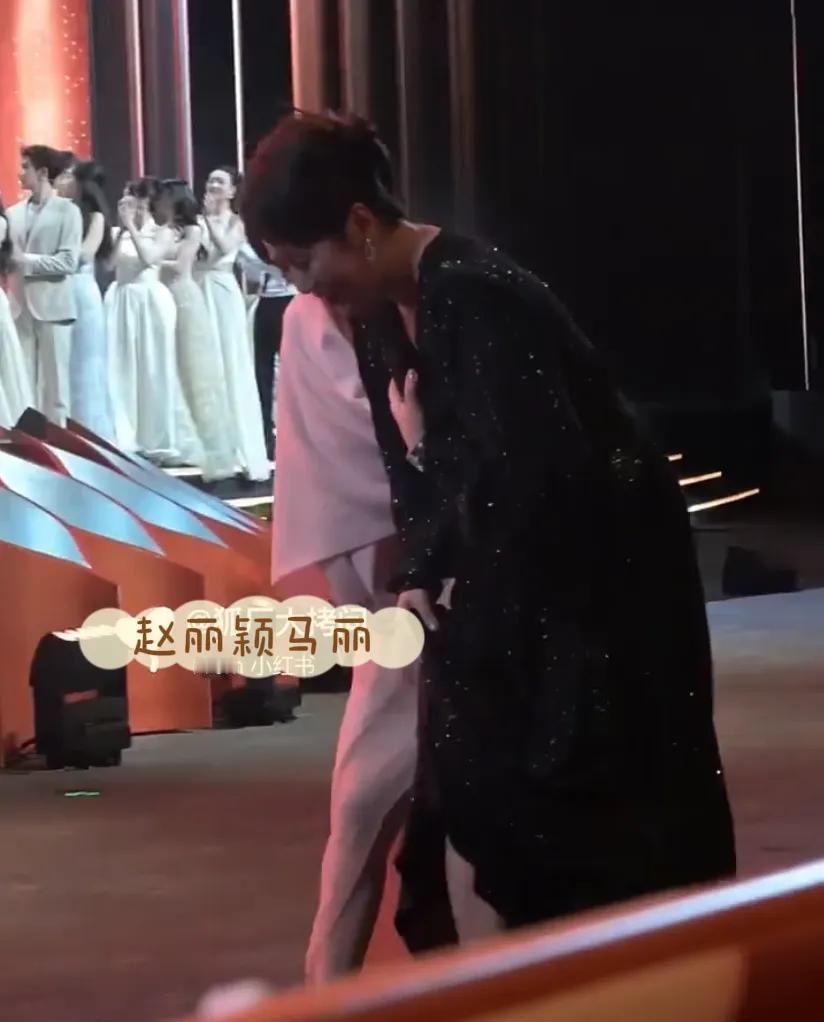 赵丽颖马丽两个人实在是太可爱了 在颁奖的时候 两个人偷偷地跑了出去 生怕被镜头抓