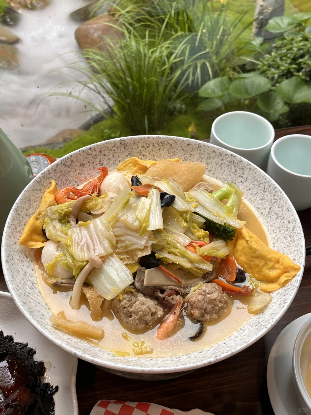 真的巨好的环境巨便宜😭😭 人均80左右吃正餐,下午茶喝咖啡才20一杯 就在阳明故里门口 店内店外景观都超级棒 穿新中式去拍照打卡适配度满分 餐厅外是西小路的自然景色,水乡江南 老街旧巷 青砖灰瓦,还有像油墨一样顺滑的河水 餐厅内的造景也很美,像搬了一座绿色的庭院进来。 本来以为可能是私宴餐厅,没想到走的是平民价格。 安利给来绍兴旅游的每一个人! 看水看桥看古镇来绍兴,而绍兴的江南在西小路。