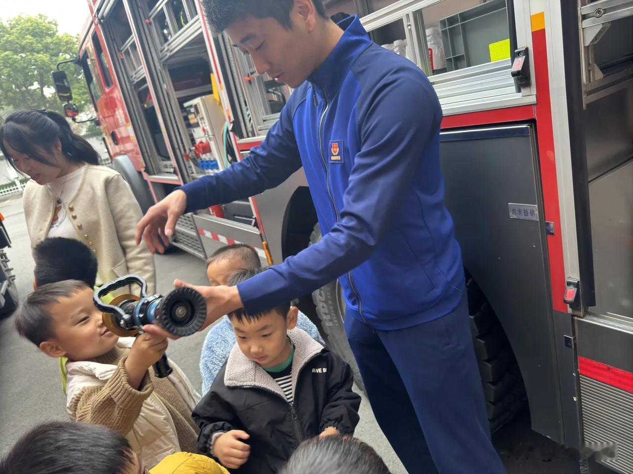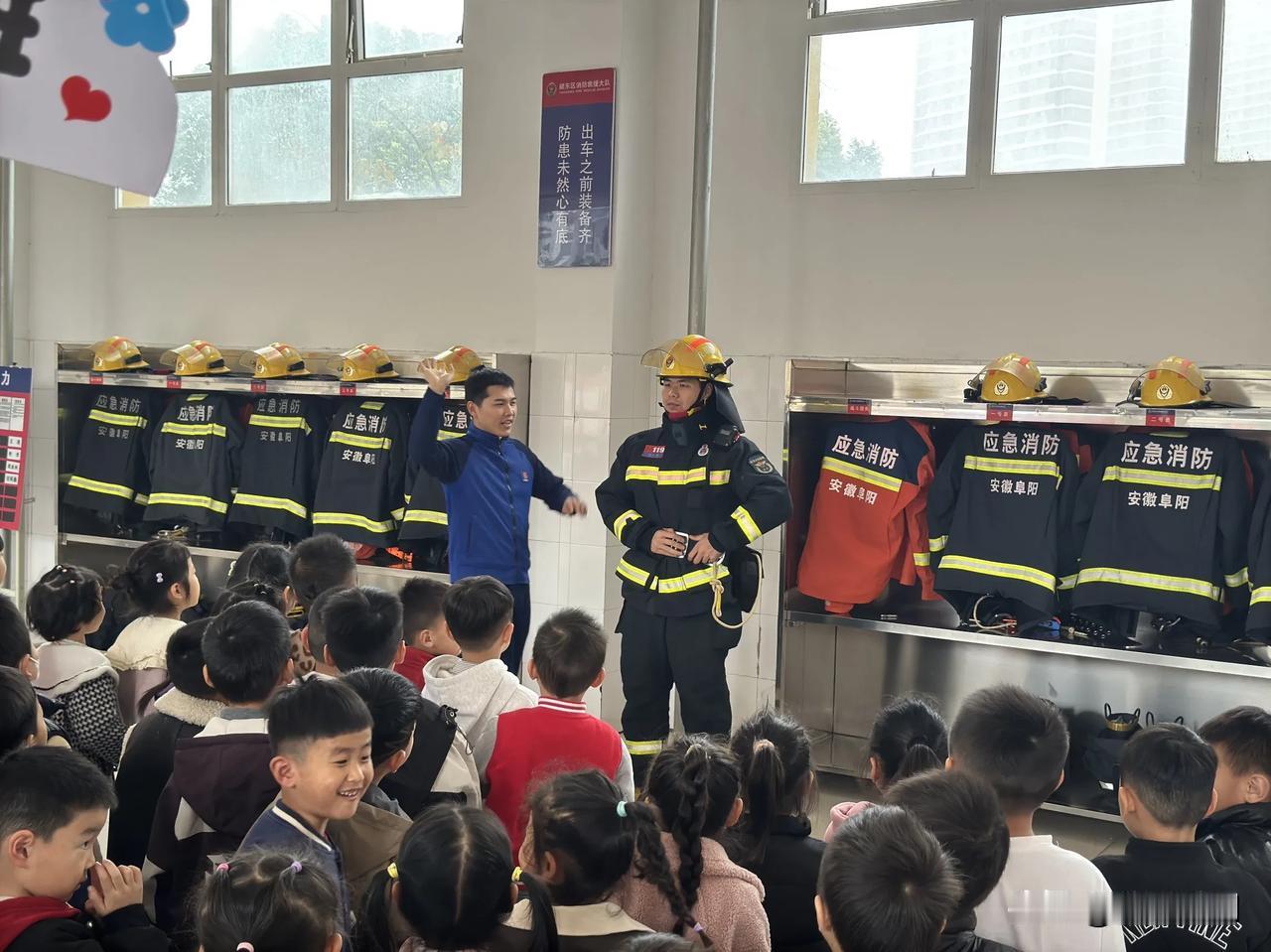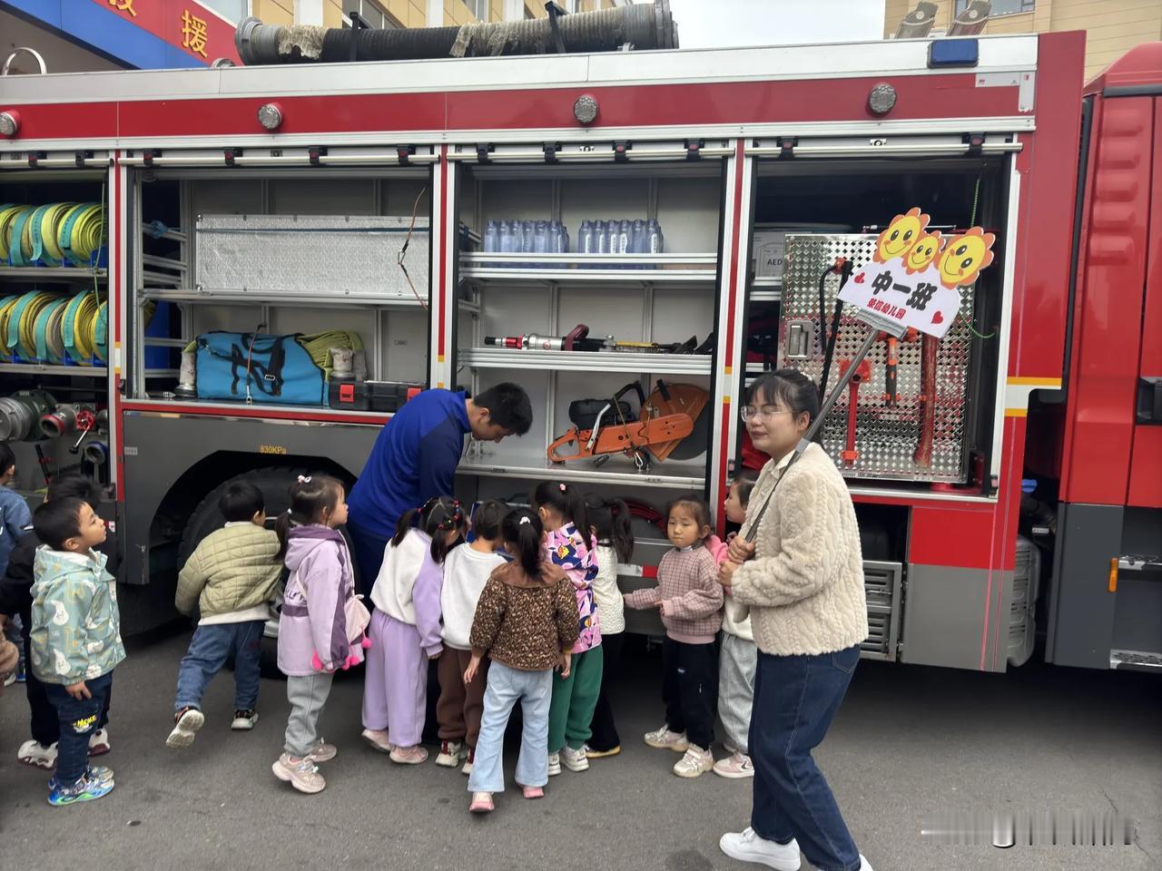 幼儿参观消防队,是不是让你惊奇?十五日上午,天色阴沉。小孙子上中班的荣信幼儿园组织大、中班幼儿到颍东区消防大队参观。八点四十分,家长送孩子来到消防队门口集合,并在门口附近等待接回孩子。九点钟,孩子们陆续进入消防队大院,在门口多少也能看到些孩子们在消防车旁边和消防队员互动的情景。我觉得组织这次参观活动很有意义。比如我孙子喜欢玩具车,家里买了好多,其中也有消防车,这回见见真正的消防车,看看消防队员穿衣,到消防车里看看演练,认识消防装备,就觉得更好玩更有趣,这比课堂上讲多少遍消防知识都有效果,比告诫孩子多少遍“不要玩火,容易招火灾”都管用。一个小时左右,孩子们陆陆续续出来,我发现阜阳市民族幼儿园大班的孩子们和老师正在门口等着进去呢!看来,不约而同,幼儿园组团参观来了,消防队员有得忙了!
