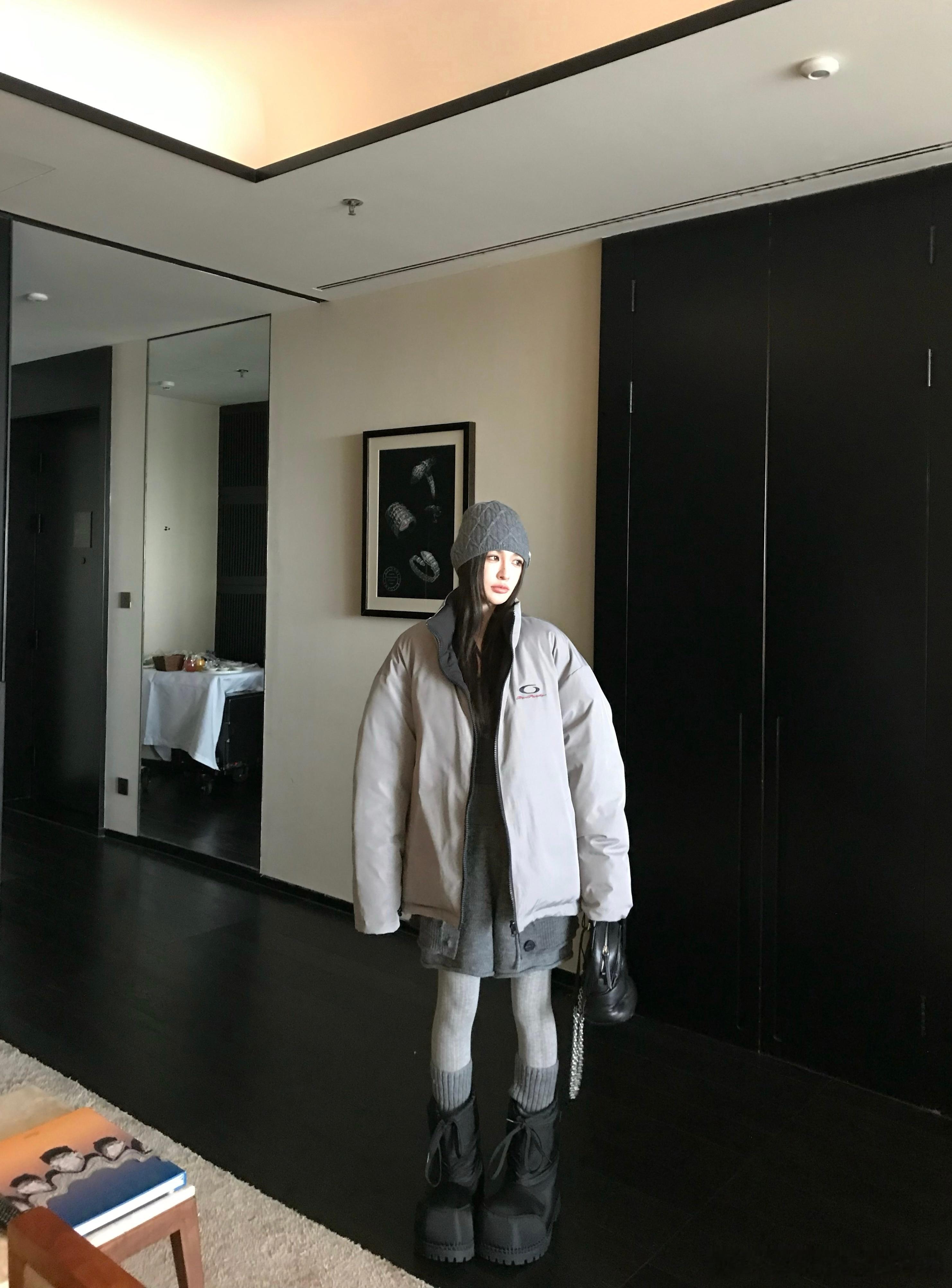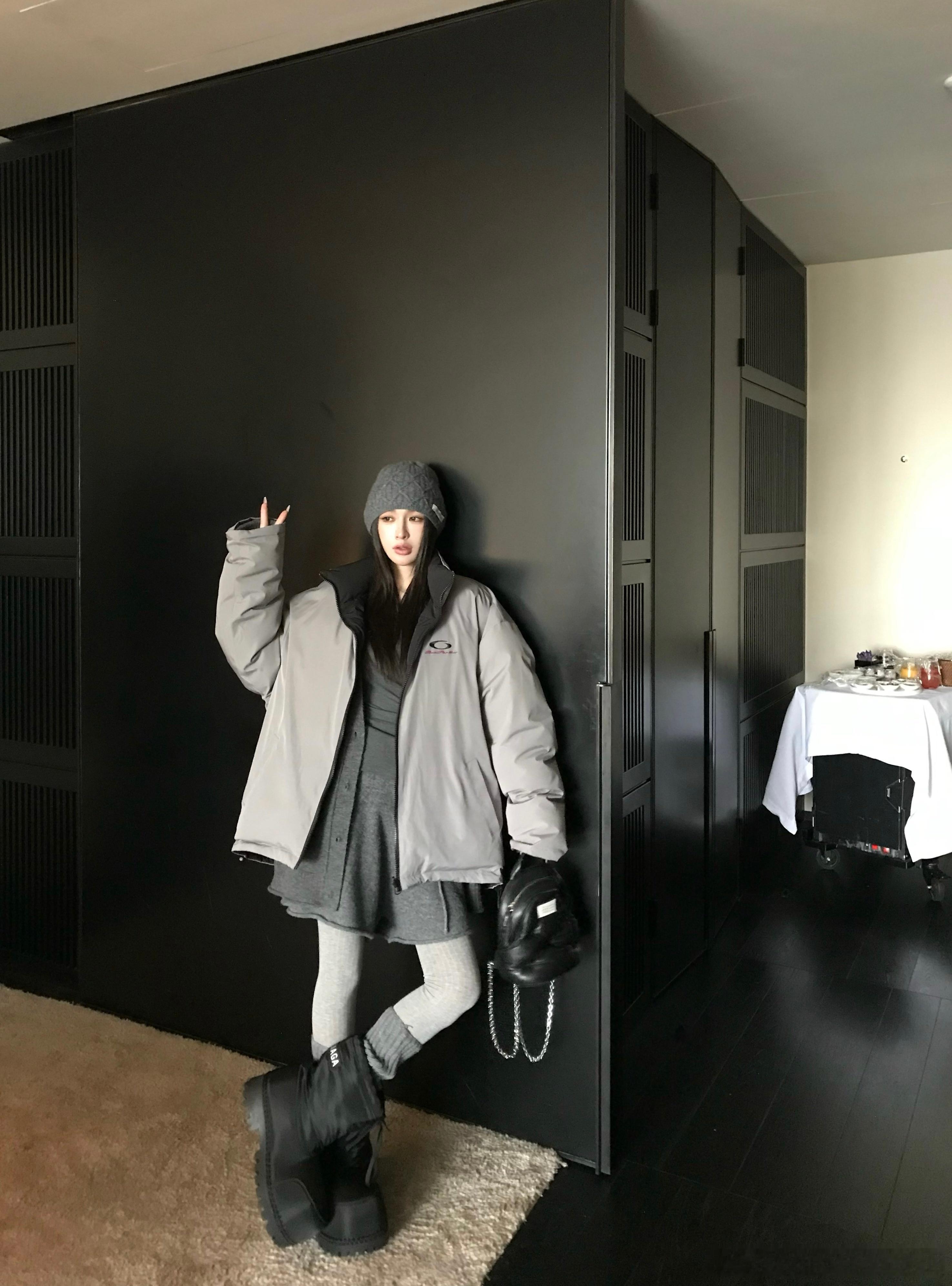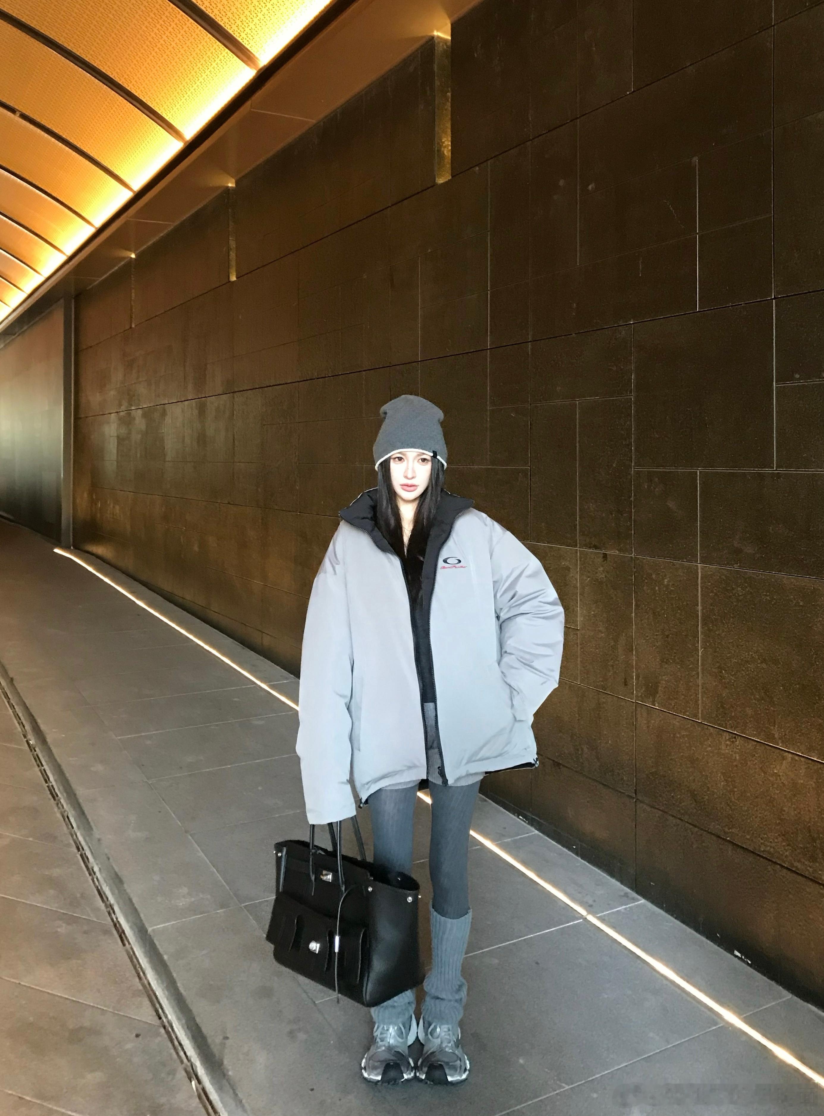 这类羽绒服就是要大大的廓形才更时髦 搭配舒适卫衣休闲裤 妥妥的高街运动