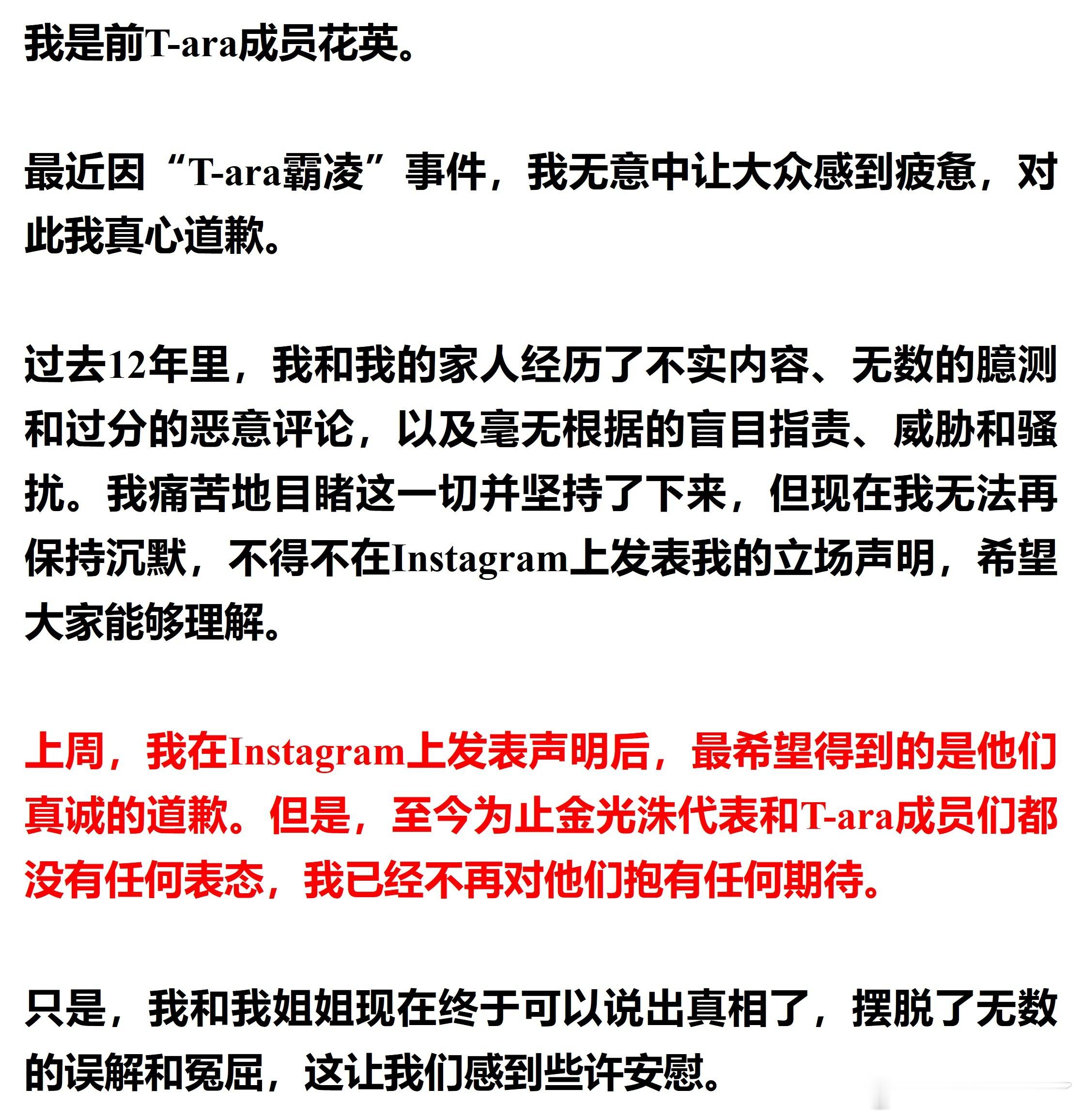 刘花英针对TARA霸凌事件再发ins,澄清了雅凛短信和洗发水言论